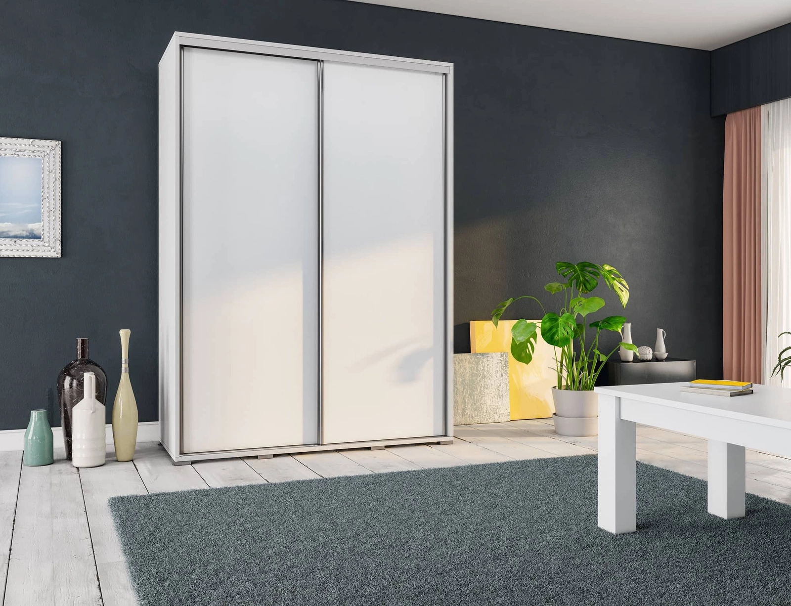 Posuvná šatní skříň Penelope 155 cm bílá moderní designová šatní skříň hliníková vodítka dveří a pojezdový systém