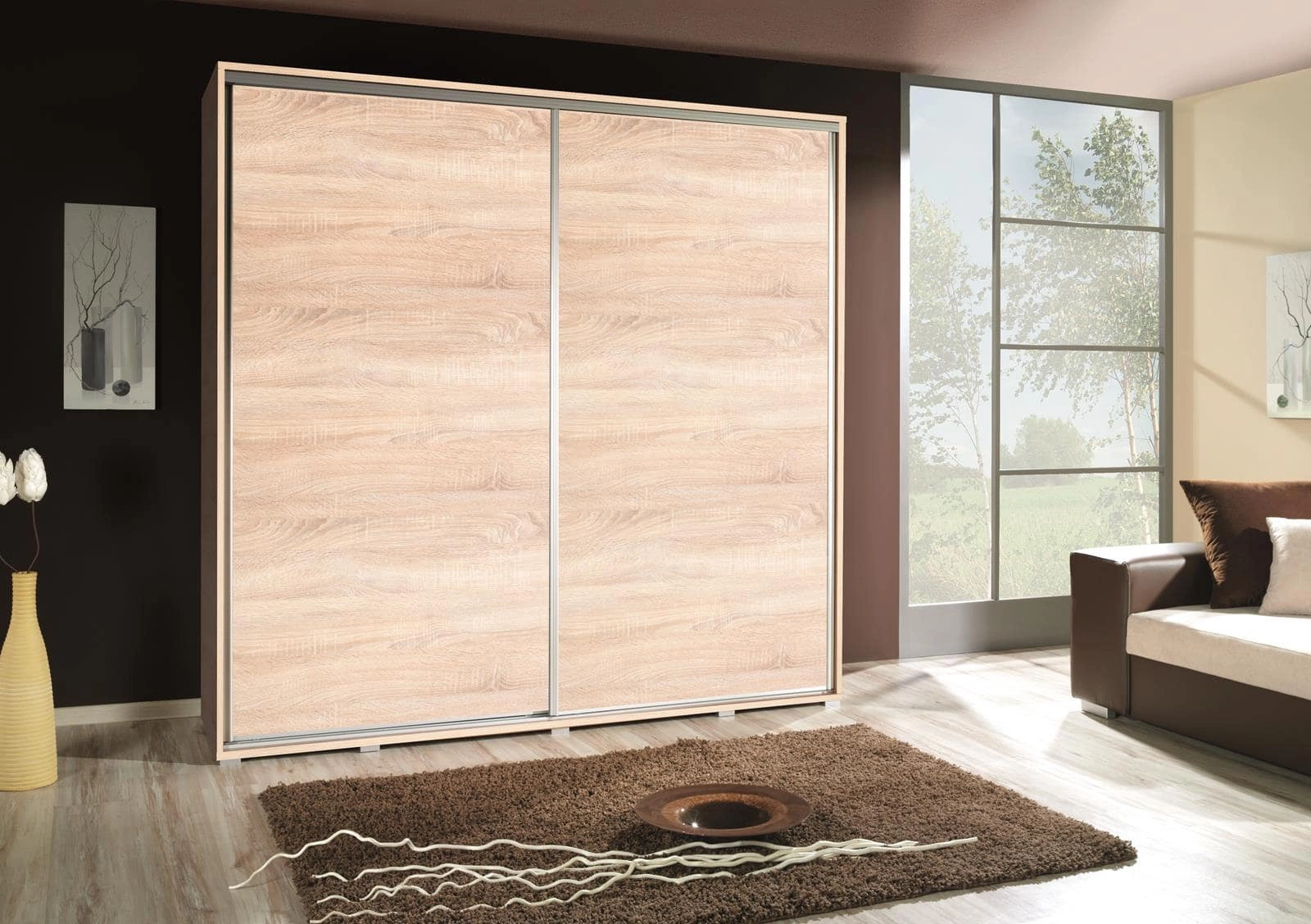 Posuvná šatní skříň Penelope 205 cm světlý dub sonoma moderní design šatní skříně hliníková vodítka dveří a pojezdový systém