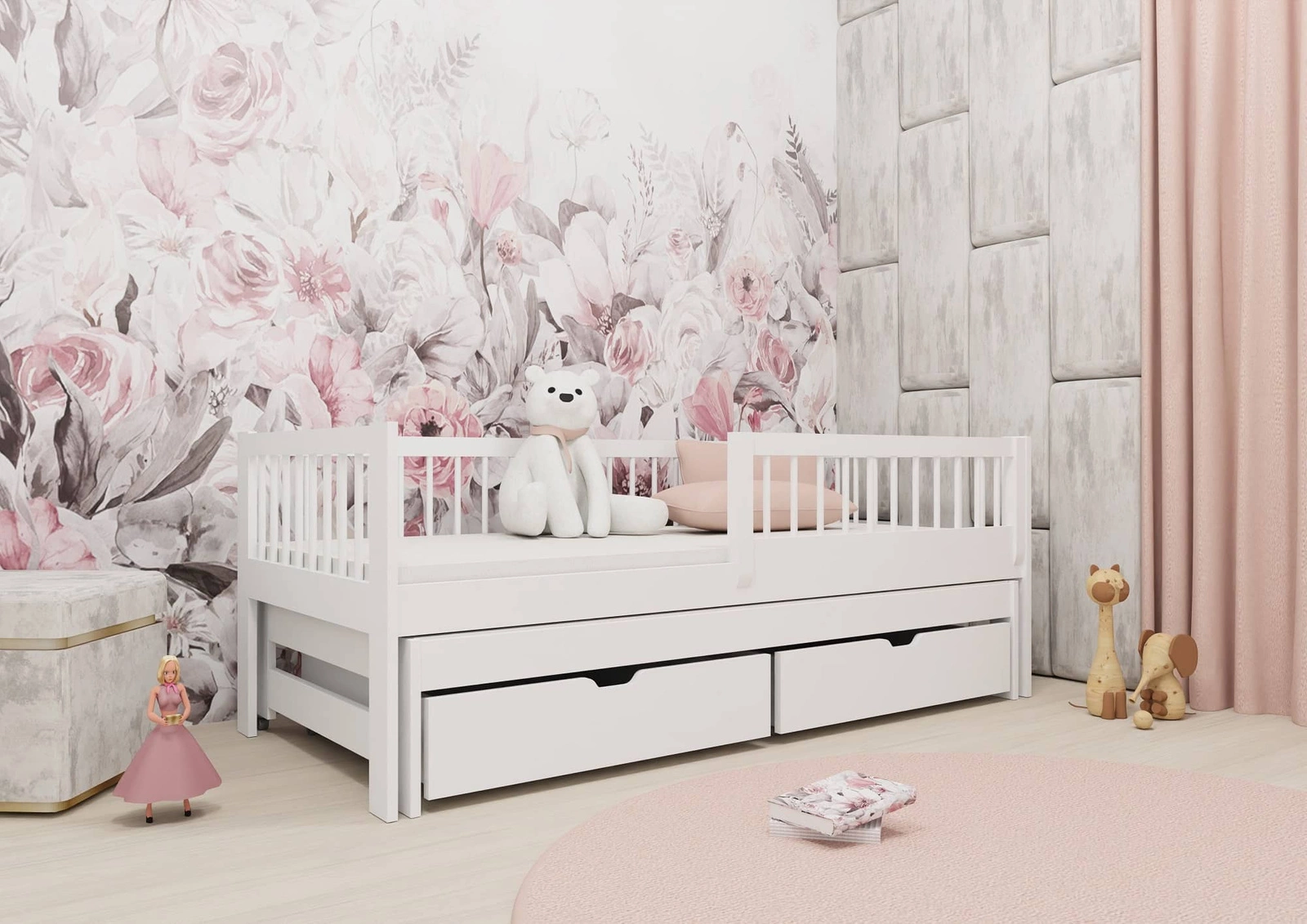 Łóżko dziecięce Simba 80x170 cm łóżko dwuosobowe dla dzieci białe łóżko 2 osobowe wysuwane
