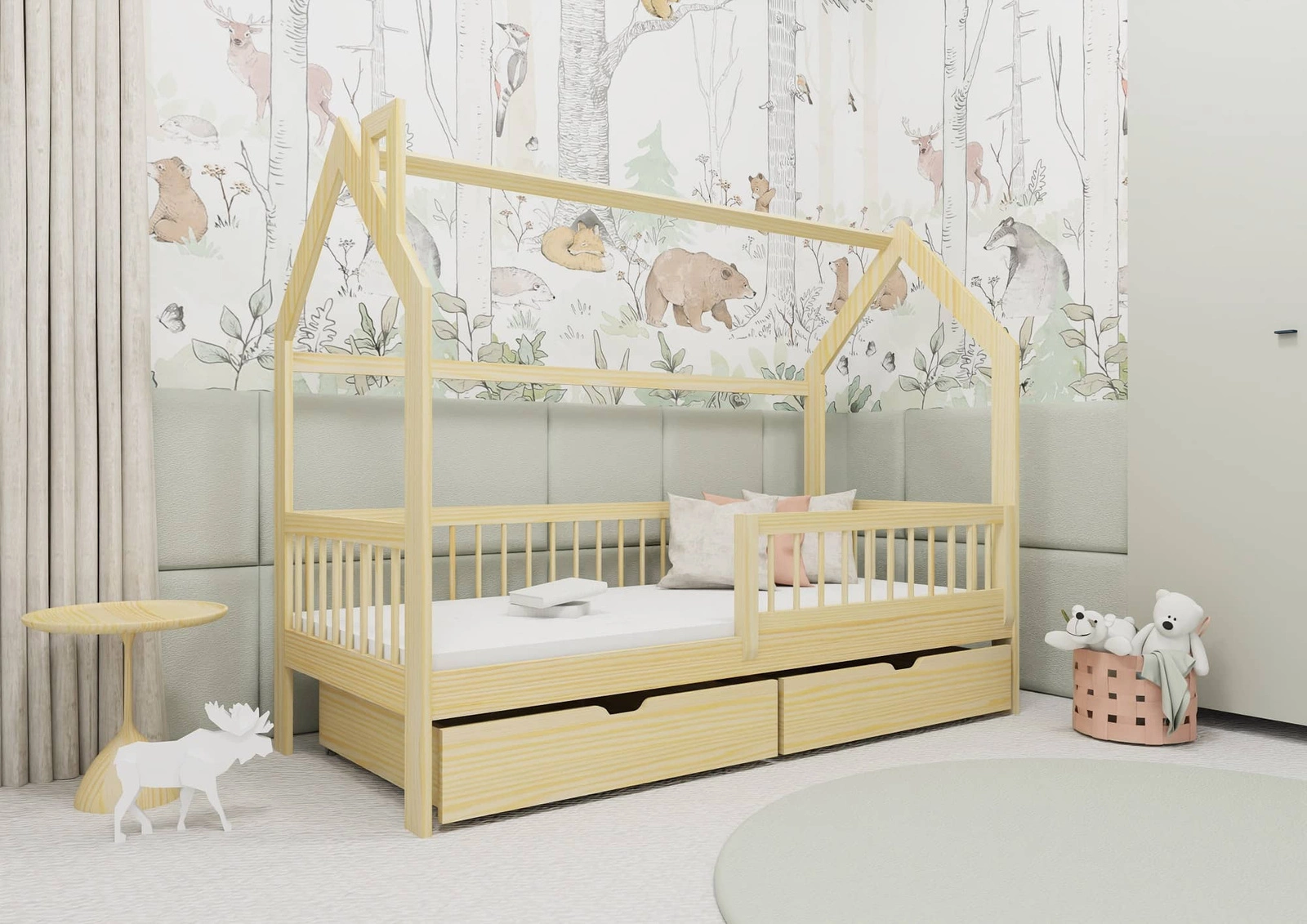Dřevěná postel Pumba 80x170 cm borovice dětská postel z masivního borovicového dřeva dětský domeček postel s prostornými zásuvkami