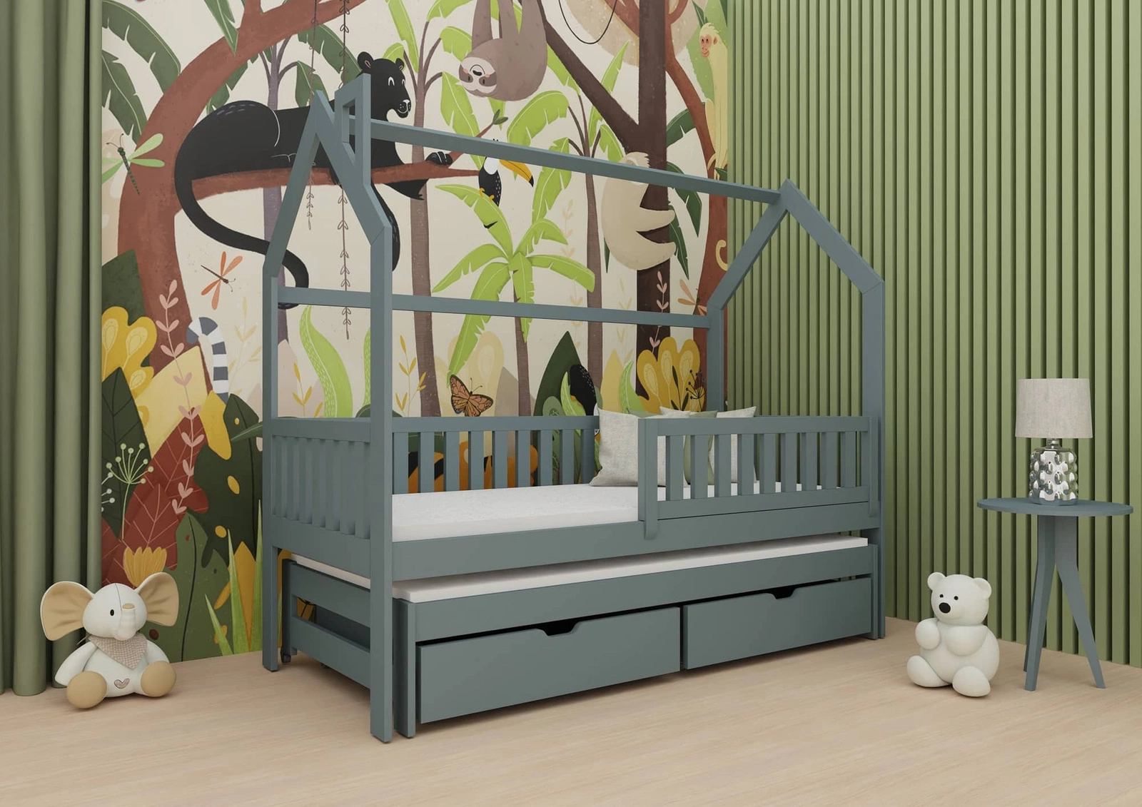 Łóżko dziecięce Miki w kolorze szarym łóżko podwójne wysuwane łóżka dla dzieci domek