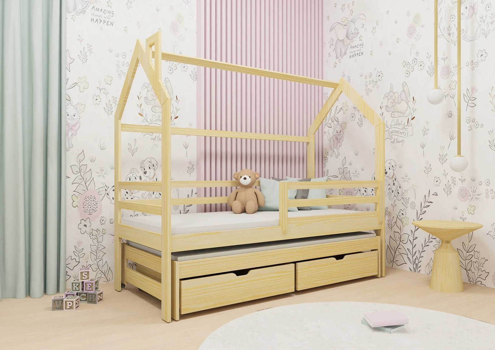 Dřevěná postel Chip je ideální volbou pro milovníky moderního uspořádání s elegantním charakterem, pro které je také důležité, aby měla široký prostor funkčnost nábytek. Dřevěná dětská postel s výsuvem část je ideální volbou pro menší byty a pokoje sdílené dvěma dětmi. Manželské postele z kolekce Chip poskytnout dvě pohodlná sedadla spát aniž by zabíraly mnoho místa. Dekorativní rám postele ve tvaru domku dodává celému zařízení originální vzhled, který jistě potěší každé dítě. Umnoho možností personalizace a design samotné postele a celého dětského pokoje.