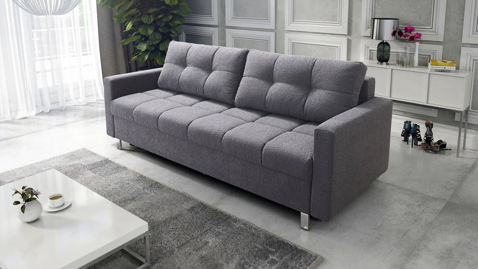 Pohovka s funkcí spaní Bilbao grafitový moderní design a široká funkční tkanina s charakteristickým smyčkovým povrchem