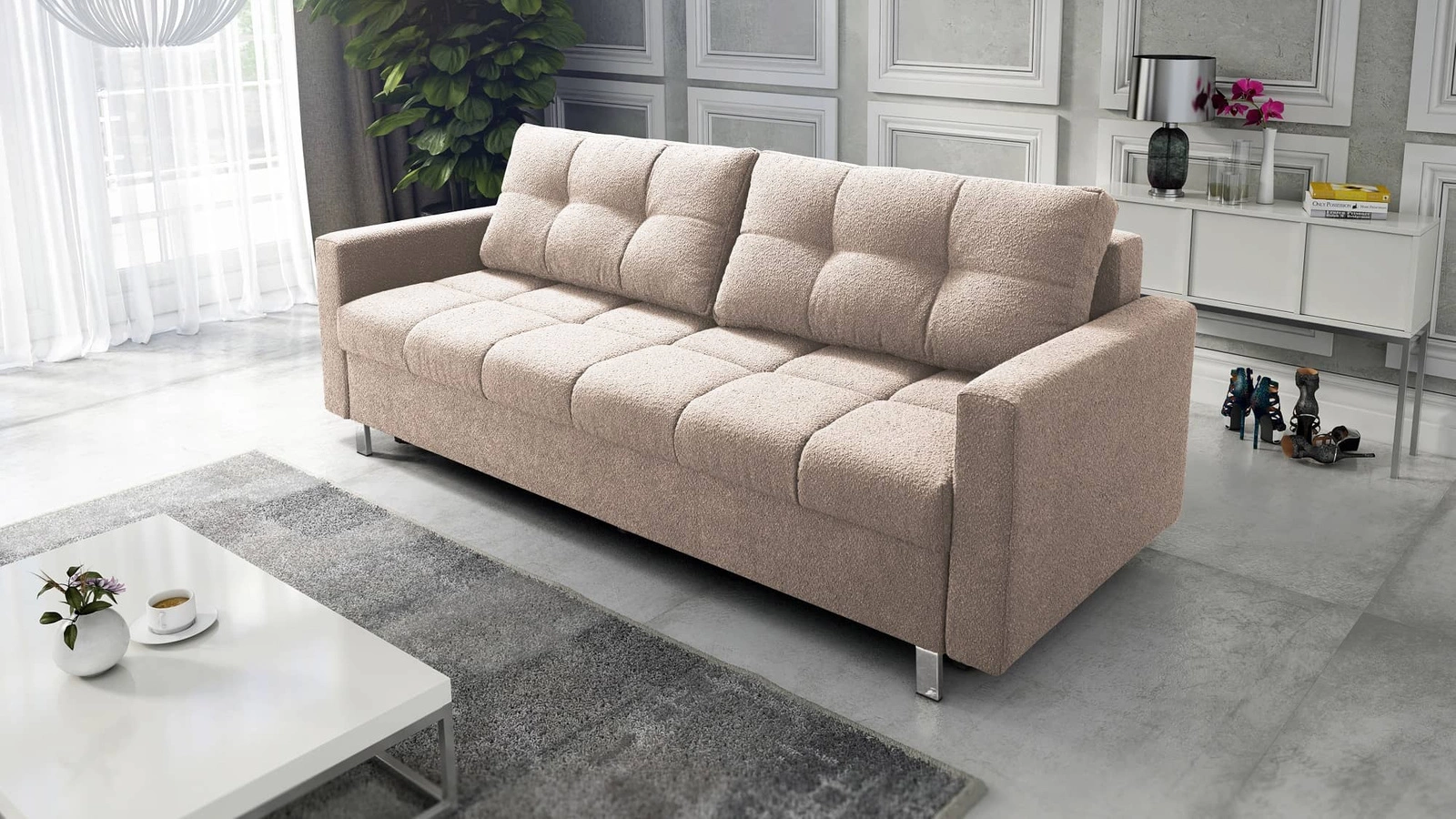 Sofa s funkcí spaní Bilbao v béžové barvě je komfort a elegance ve vašem obývacím pokoji