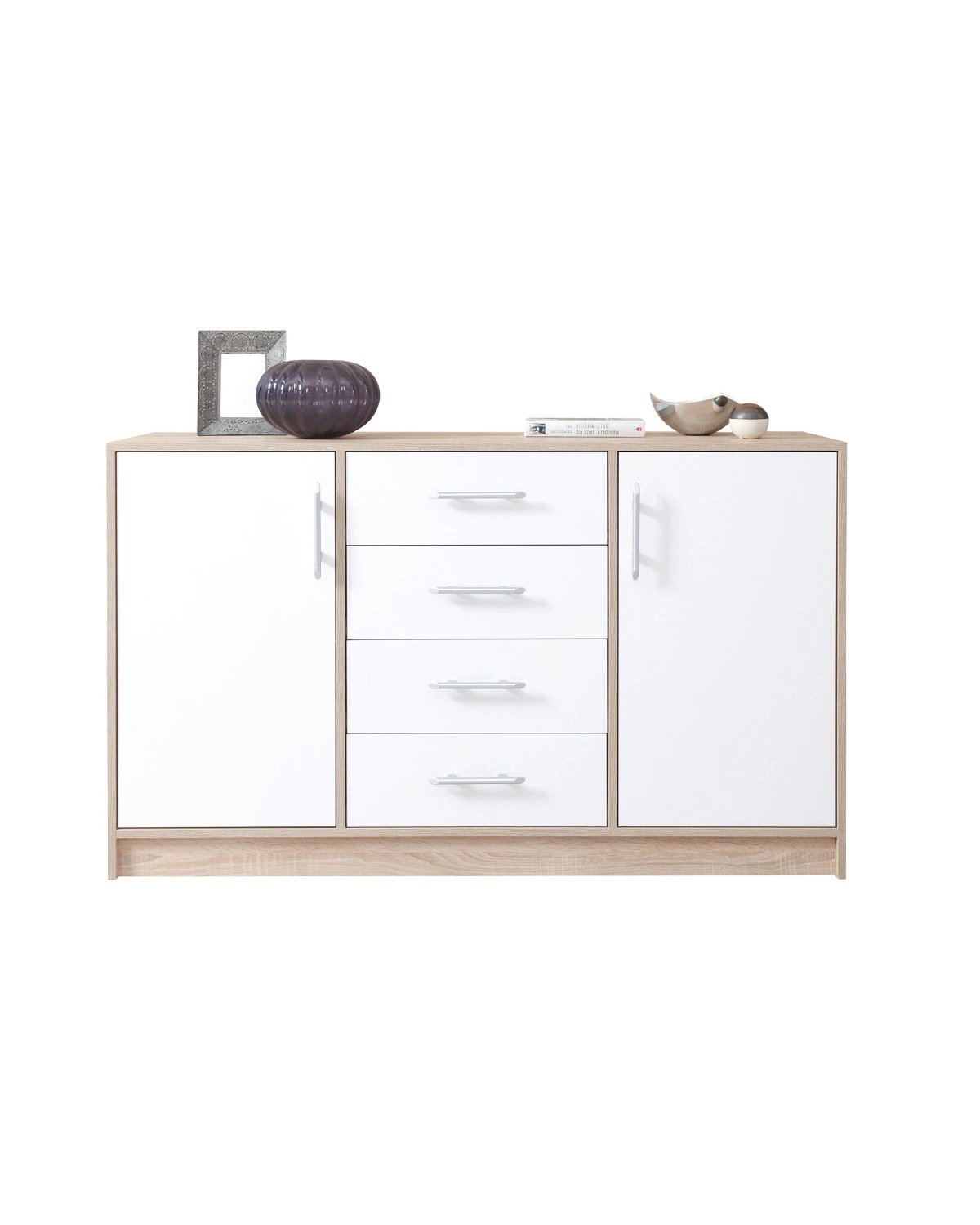 Komoda z kolekce Caspe se vyznačuje jednoduchými tvary. Nábytek je vyroben z 2 dvířka i 4 zásuvky výsuv na válečkových kluzácích. Čela komody jsou doplněna hliníkovými úchyty.