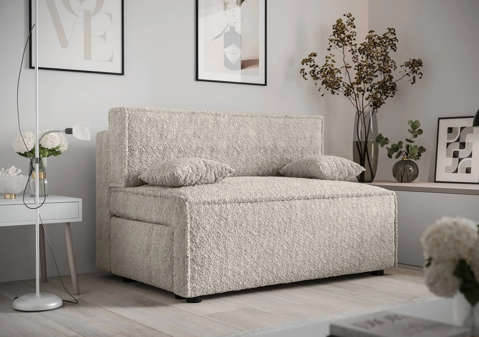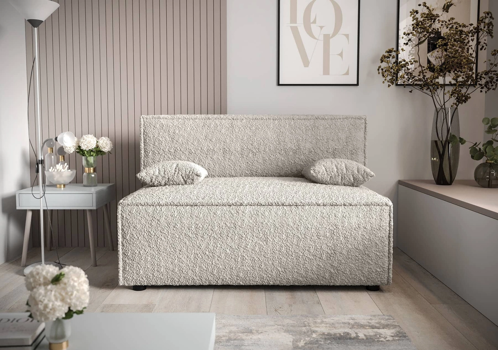 Rozkládací pohovka Brandon krémová moderní design a široká funkční tkanina s výrazným smyčkovým povrchem