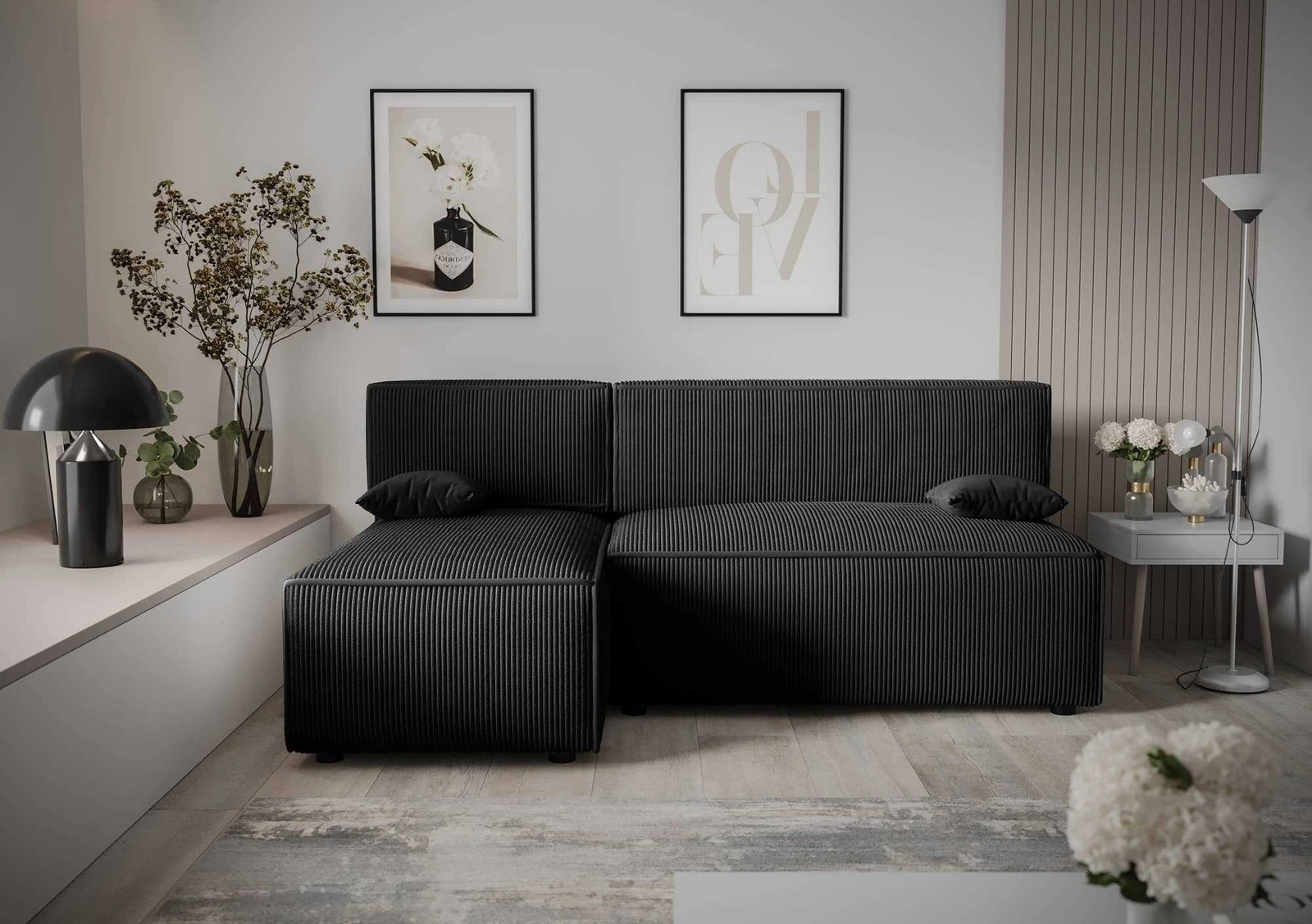 Rohová jednotka s funkcí spaní Brandon je jednoduchý kus nábytku s moderním designem, který dokonale zapadne do jakéhokoli uspořádání. Pohovka byla celá potažena látkou typu velur Anafi 19. Trojrozměrné manšestrová tkanina s výrazným a silným žebrováním dodává pohovce zvláštní charakter a činí ji jedinečně krásnou. Tkanina je velmi měkká a přesto pevná a robustní. Čalounická látka Anafi je odolnost proti oděru, a také snadno se udržuje v čistotě. Díky tomu bude rohová rozkládací pohovka Brandon vypadat esteticky a elegantně po dlouhou dobu. Rohová sedací souprava s funkcí každodenního spaní je vyrobena z vysoce kvalitních materiálů, které jsou odolné vůči vnějším vlivům, jako je čalounění nábytku a různé druhy nárazů.