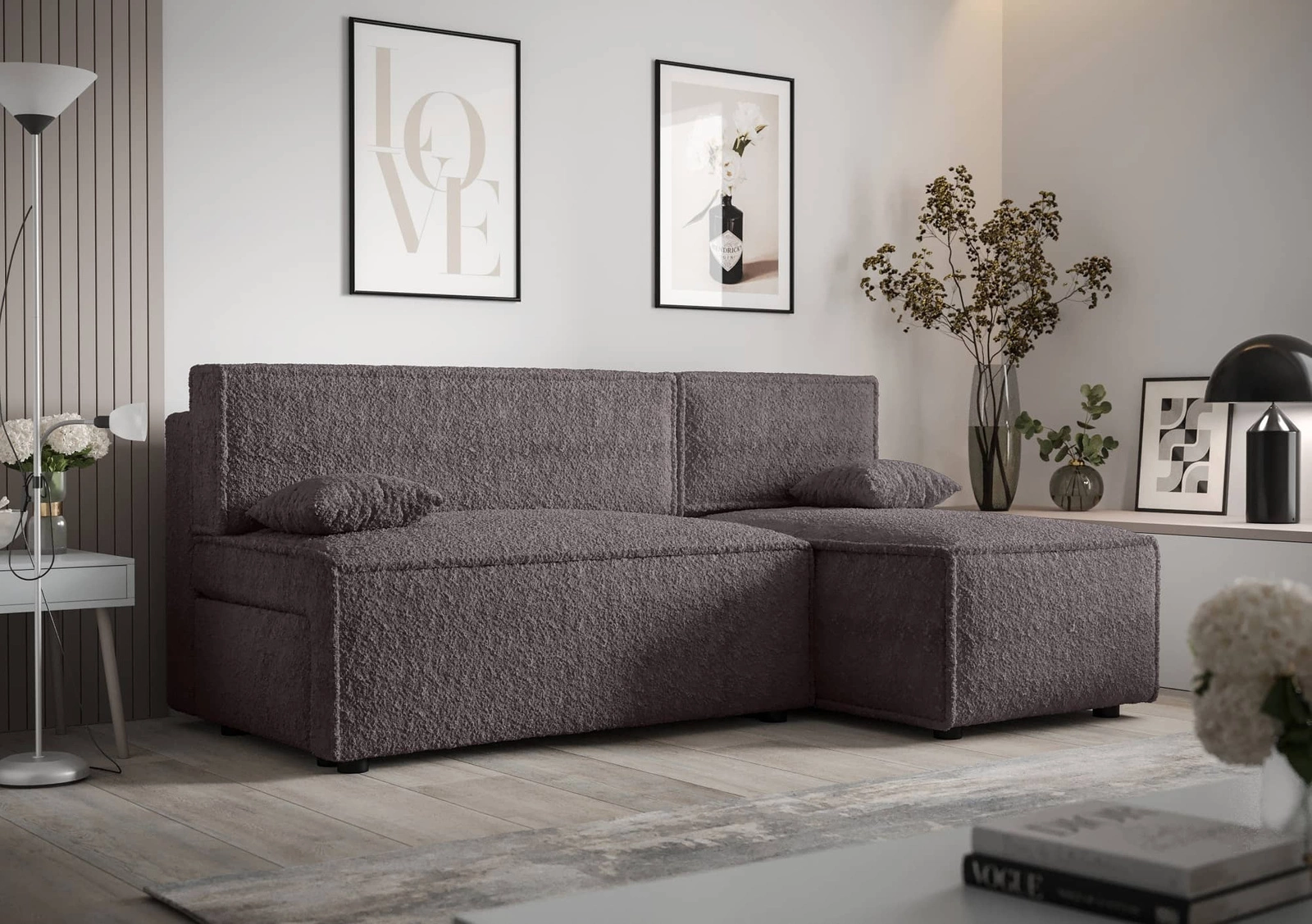 Rohová sedací souprava s funkcí spaní Brandon graphite pravá strana měkká tkanina s charakteristickou smyčkovou povrchovou nádobou na lůžkoviny