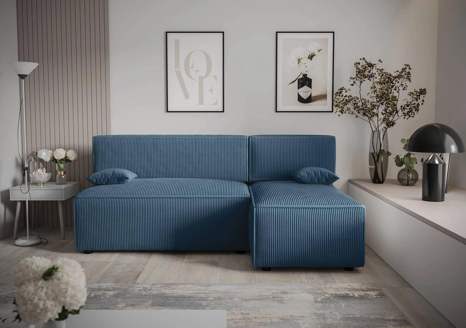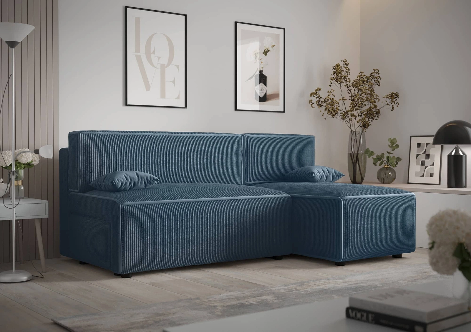 Rohová pohovka Brandon v modré barvě je atraktivním kusem nábytku, který si snadno najde místo v každé místnosti vašeho domova!