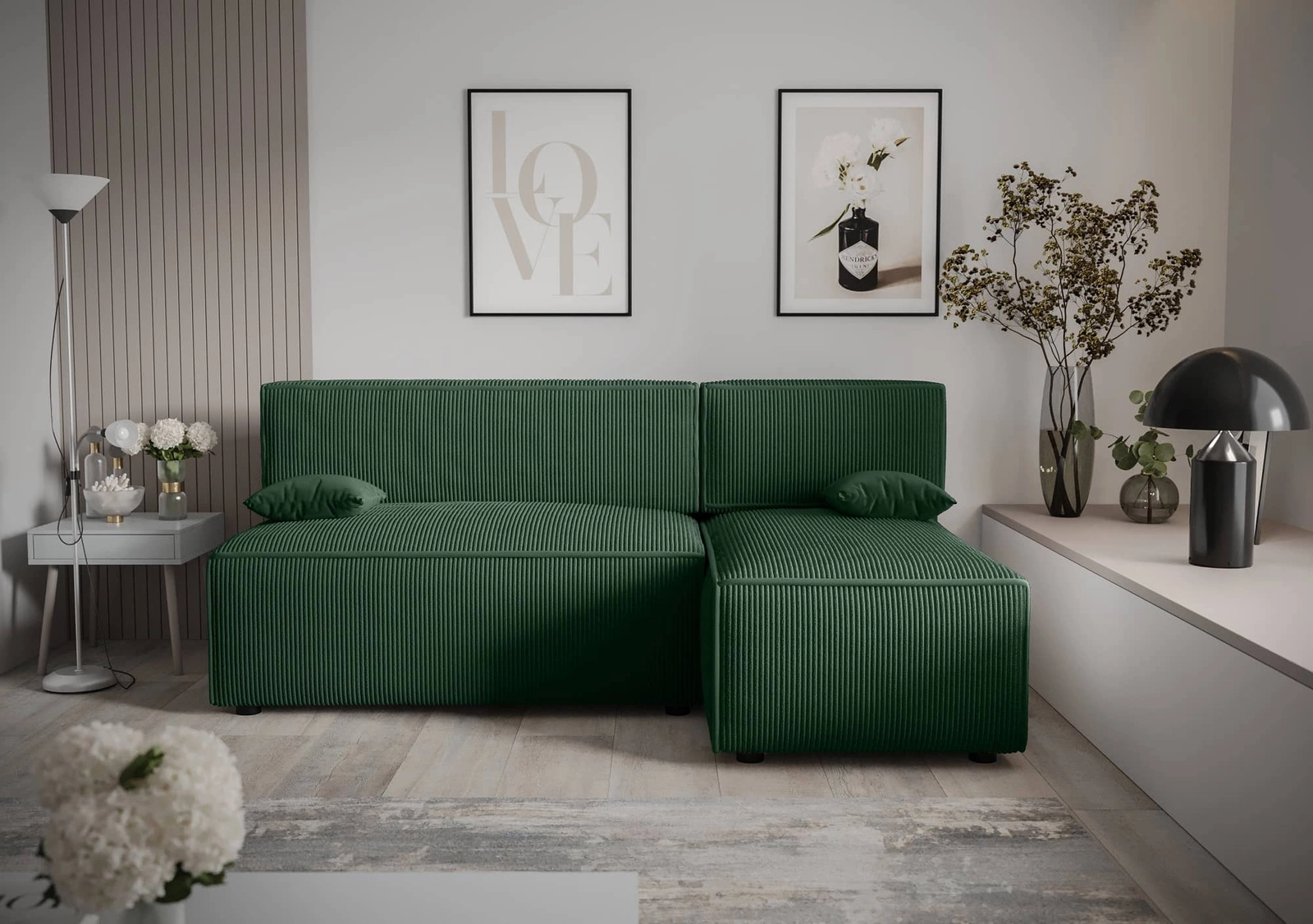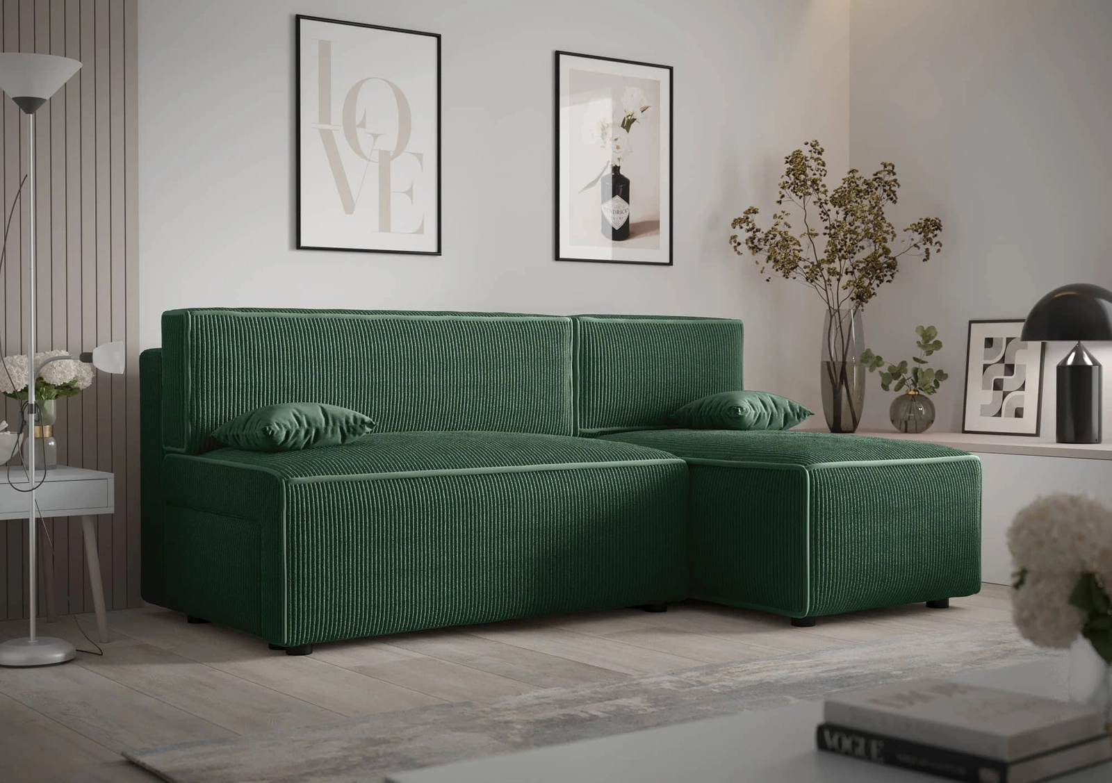 Rohová pohovka Brandon v zelené barvě je atraktivním kusem nábytku, který si snadno najde místo v každé místnosti vašeho domova!
