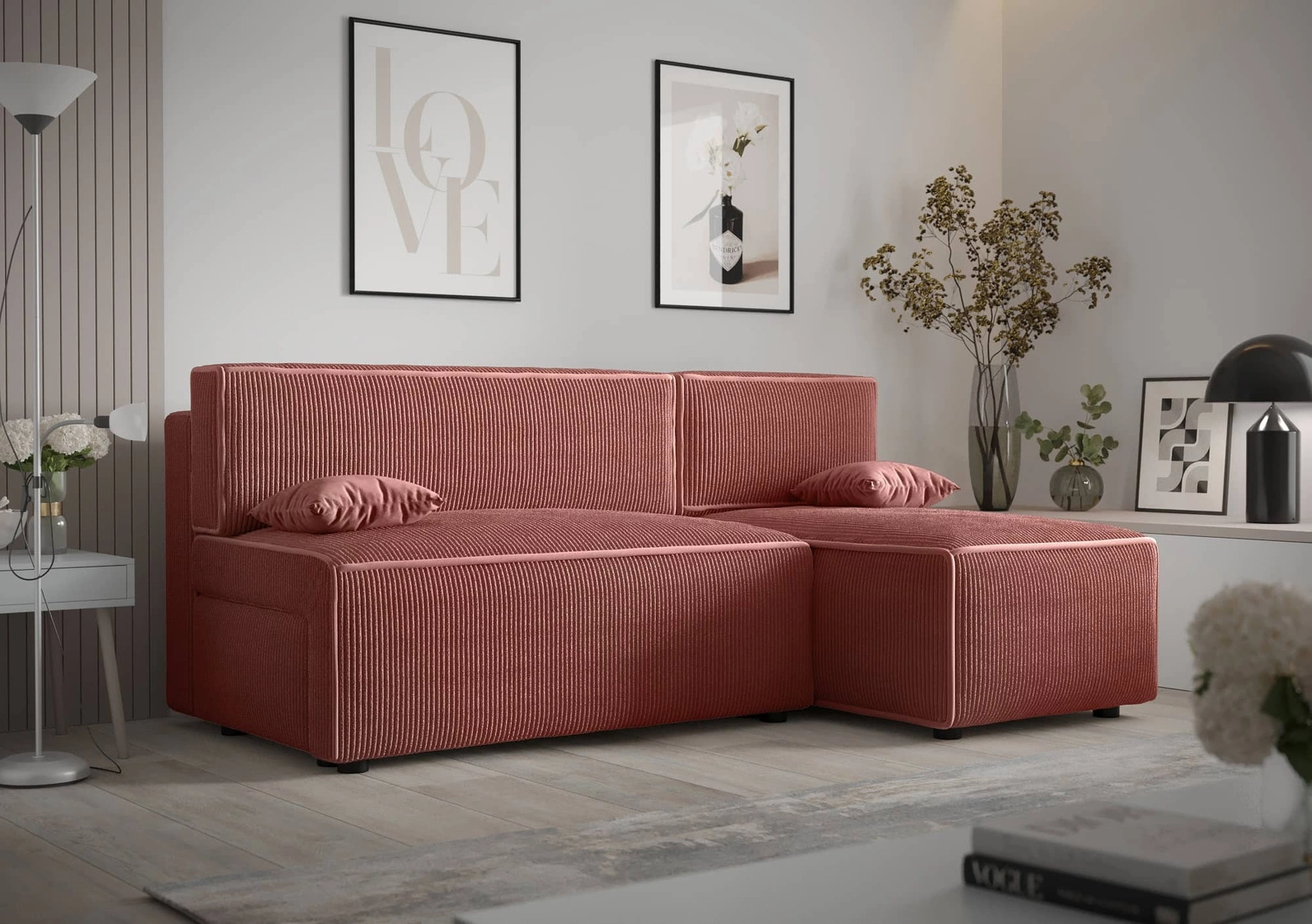 Rohová pohovka Brandon v indické růžové barvě je atraktivním kusem nábytku, který si snadno najde místo v každé místnosti vašeho domova!