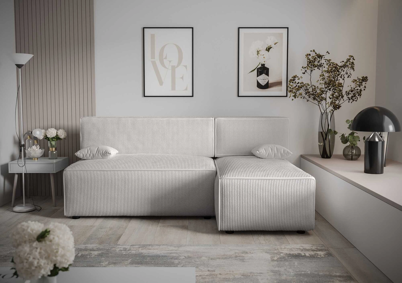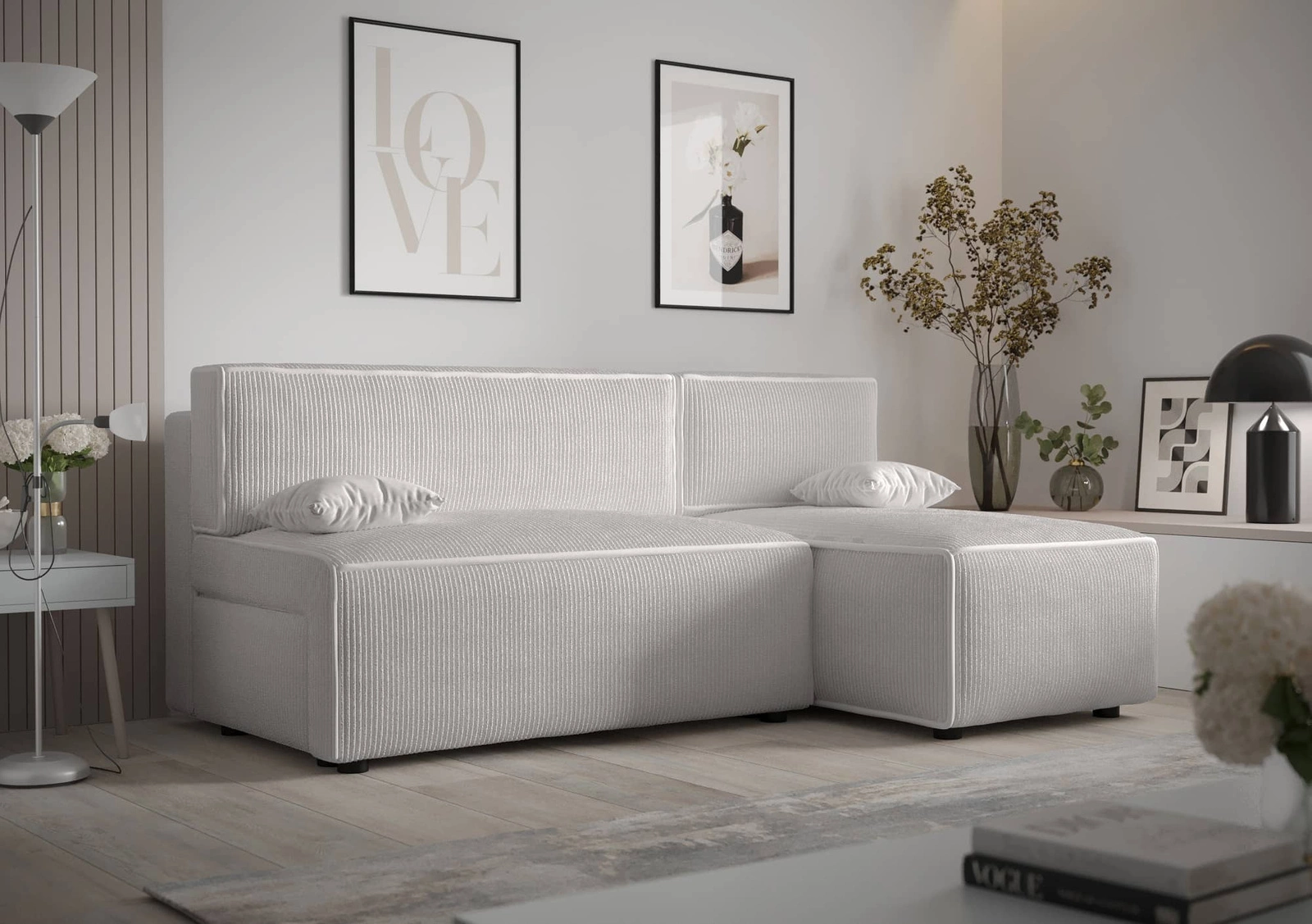 Rohová jednotka s funkcí spaní Brandon je jednoduchý kus nábytku s moderním designem, který dokonale zapadne do jakéhokoli uspořádání. Pohovka byla celá potažena látkou typu velur Poso 100. Trojrozměrné manšestrová tkanina s výrazným a silným žebrováním dodává pohovce zvláštní charakter a činí ji jedinečně krásnou. Tkanina je velmi měkká a přesto pevná a robustní. Čalounická tkanina Poso je odolnost proti oděru, a také snadno se udržuje v čistotě. Díky tomu bude rohová rozkládací pohovka Brandon vypadat esteticky a elegantně po dlouhou dobu. Rohová sedací souprava s funkcí každodenního spaní je vyrobena z vysoce kvalitních materiálů, které jsou odolné vůči vnějším vlivům, jako je čalounění nábytku a různé druhy nárazů.