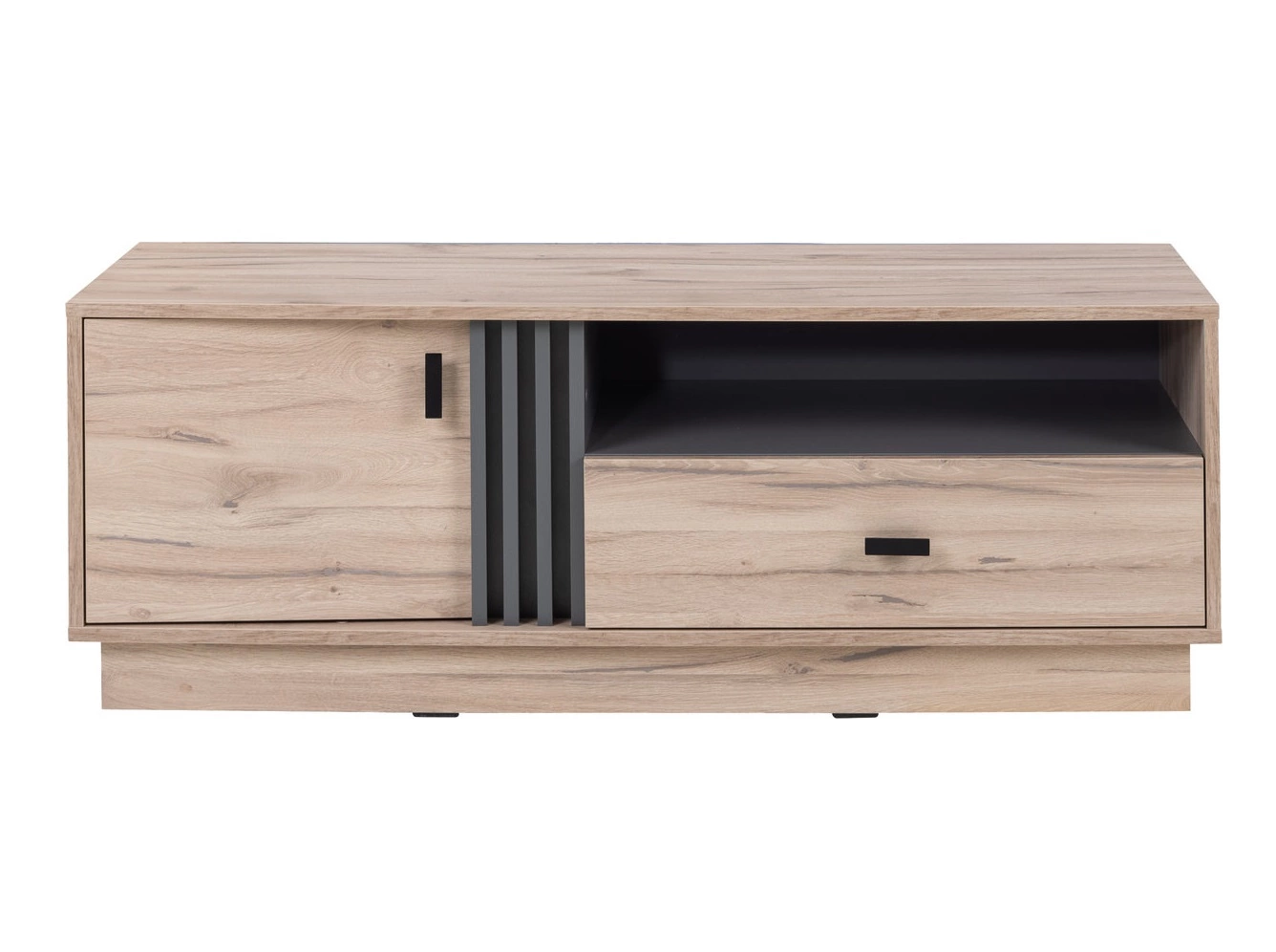 Police ve skříni RTV je skvělým místem pro váš televizor nebo herní konzoli. Záruky na nábytek Estan pohodlné a bezproblémové používání a odolnost celé nástěnné jednotky pro dlouholeté používání. Teplé dubové zbarvení dodává místnosti lehkou a útulnou atmosféru, díky kterému se nábytek Estan dokonale zkontrolujte lze použít jako nástěnnou skříňku do obývacího pokoje nebo jako nástěnnou skříňku do obývacího pokoje.