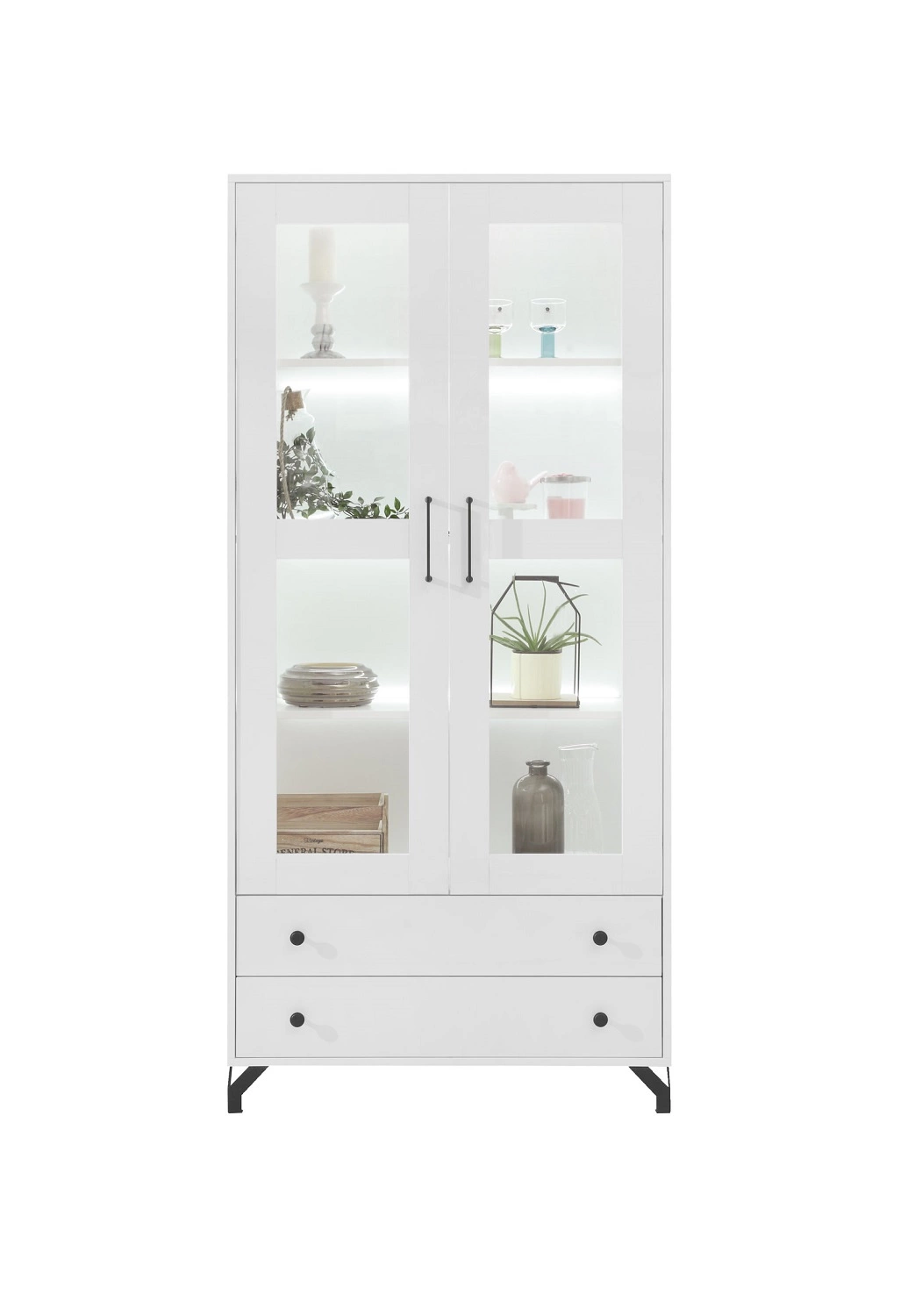 Nábytková sestava Skien je ideální volbou pro milovníky moderního uspořádání s elegantním charakterem, pro které je k dispozici široká škála nábytku funkčnosti nábytek. Stylovým doplňkem čelních ploch jsou kovové úchyty v černé barvě, které kromě své primární funkce dodávají nábytku jedinečný styl. Struktura nábytku byla zpestřena designérem kovovými nohami v černé barvě.
