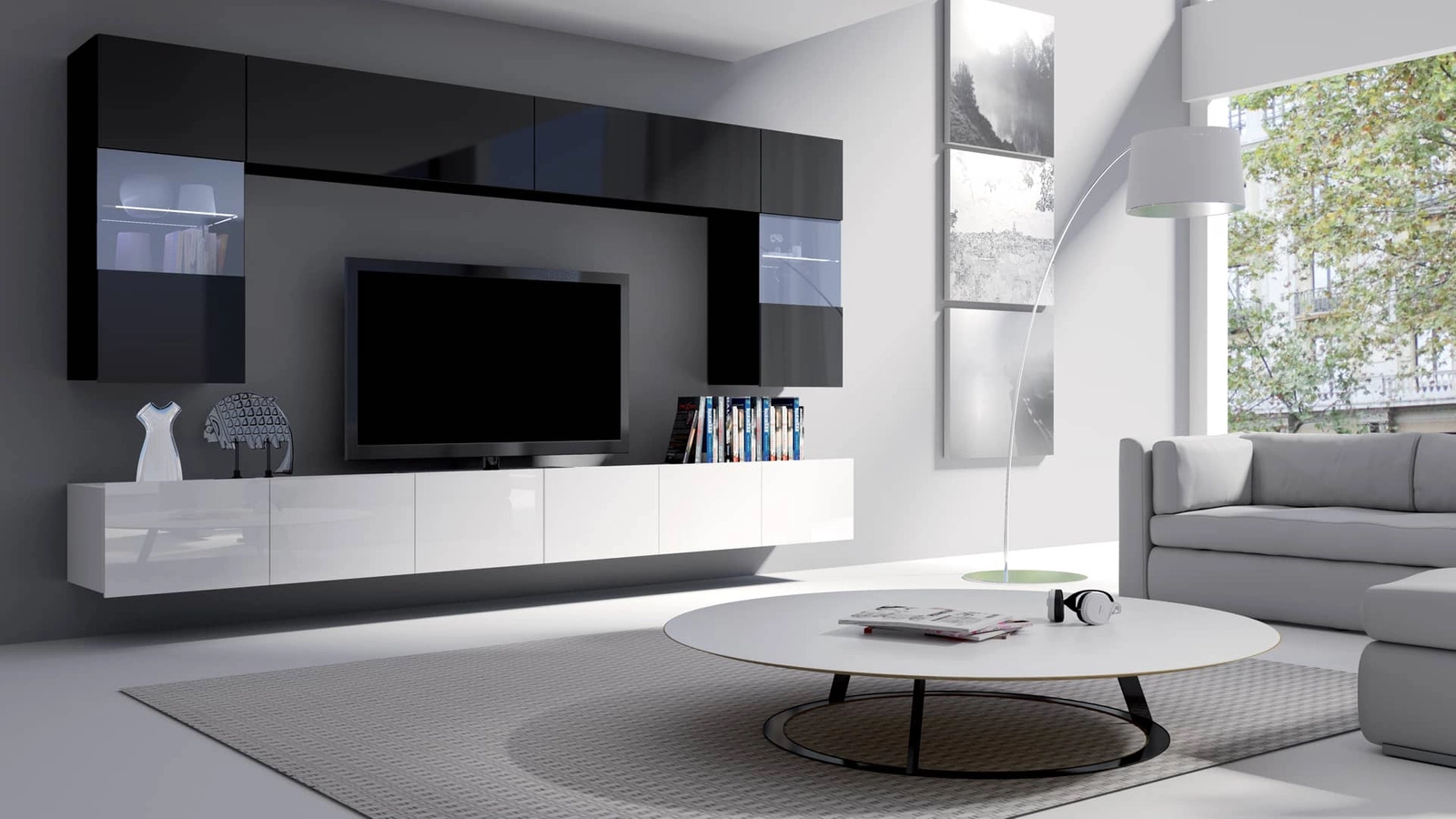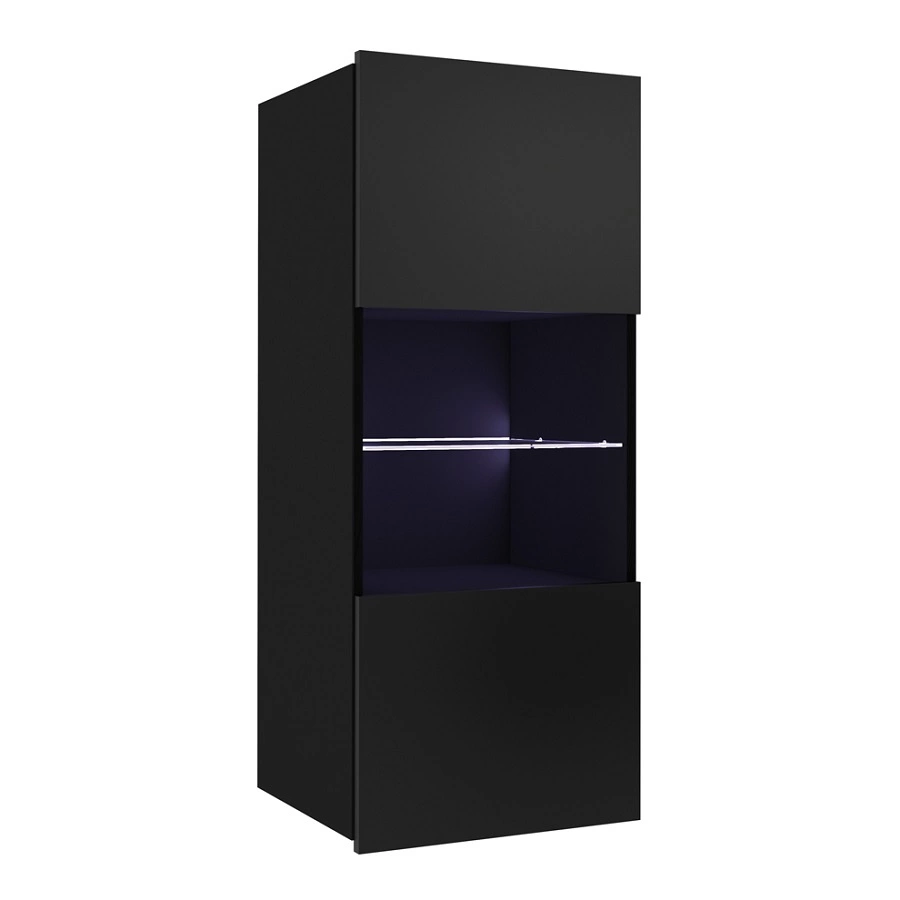 Prosklené vitríny umožňují vystavit dekorace do obývacího pokoje. Prostorné skříně RTV pojme veškeré příslušenství a vybavení. Subteliny převislé fronty slouží také jako rukojeť. Další výhoda skříně RTV je možnost volby způsobu jejího umístění. Skříň RTV lze zavěsit na stěnu. Díky přiloženým plastovým nožičkám je skříň RTV velmi rychlá se může stát stojícím kusem nábytku.