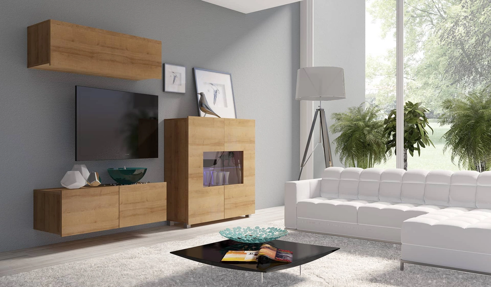 Nástěnná jednotka je vyrobena z vysoce kvalitní laminované desky, který je odolný vůči vnějším vlivům, jako jsou otlaky, nárazy a nešťastné škrábance. Záruky za nábytek Apulie bezproblémové používání a odolnost celé nástěnné jednotky pro dlouholeté používání. Teplé dubové zbarvení skvělé ladí s ostatními barvami, což z nábytku Apulia dělá skvělý zkontrolujte lze použít jako nástěnnou skříňku do obývacího pokoje nebo jako nástěnnou skříňku do obývacího pokoje.