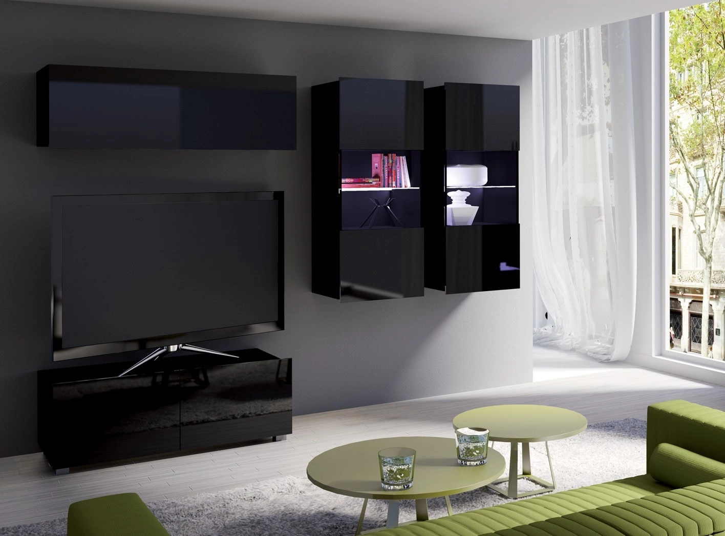 Nástěnná skříňka Apulia XII v černém lesku Výjimečně stylová nástěnná skříňka s jednoduchými nábytkovými díly, která se hodí do každého interiéru