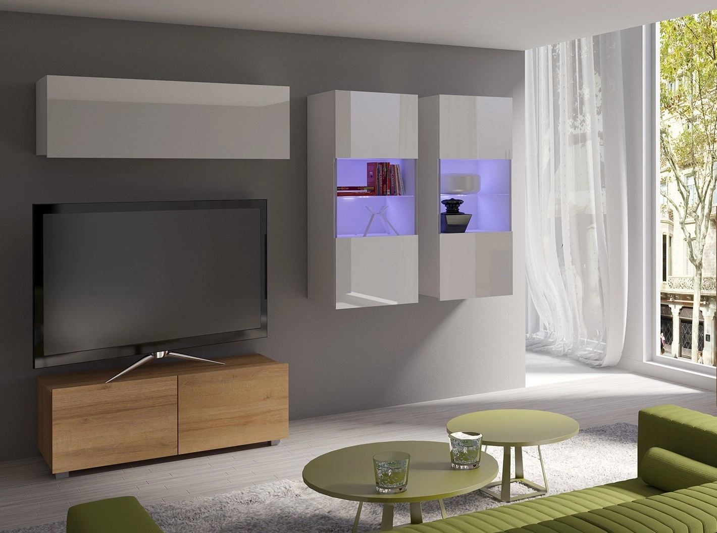 Nábytek nástěnná skříňka Apulia XII bílý lesk / zlatý dub výjimečně stylová nástěnná skříňka jednoduché jednotky hodící se do každého interiéru