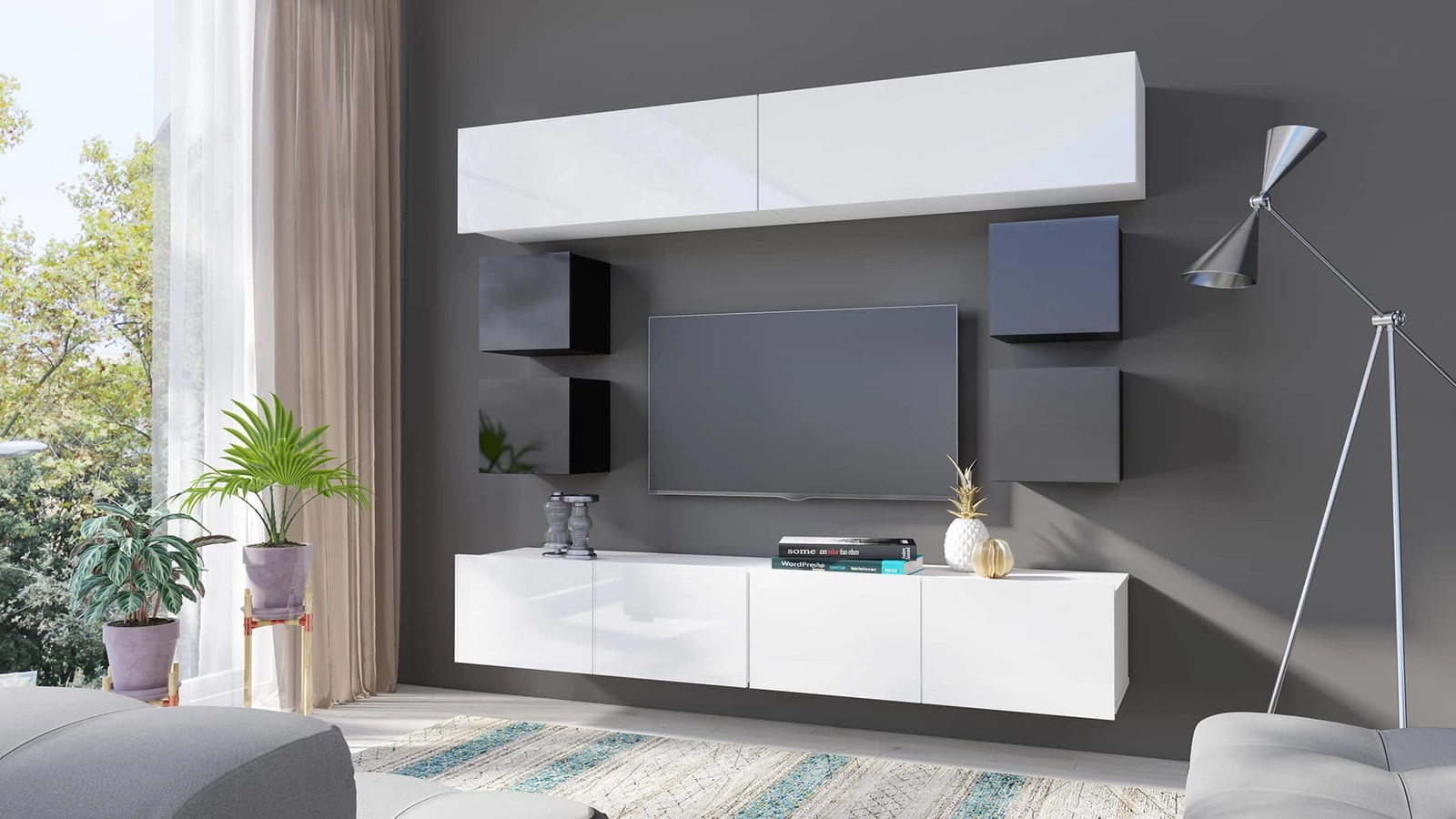 Nástěnná jednotka je vyrobena z vysoce kvalitní laminované desky, který je odolný vůči vnějším vlivům, jako jsou otlaky, nárazy a nešťastné škrábance. Záruky za nábytek Apulie bezproblémové používání a odolnost celé nástěnné jednotky pro dlouholeté používání. Ikonická kombinace bílé a černé skvělé ladí s ostatními barvami, což z nábytku Apulia dělá skvělý zkontrolujte lze použít jako nástěnnou skříňku do obývacího pokoje nebo jako nástěnnou skříňku do obývacího pokoje.