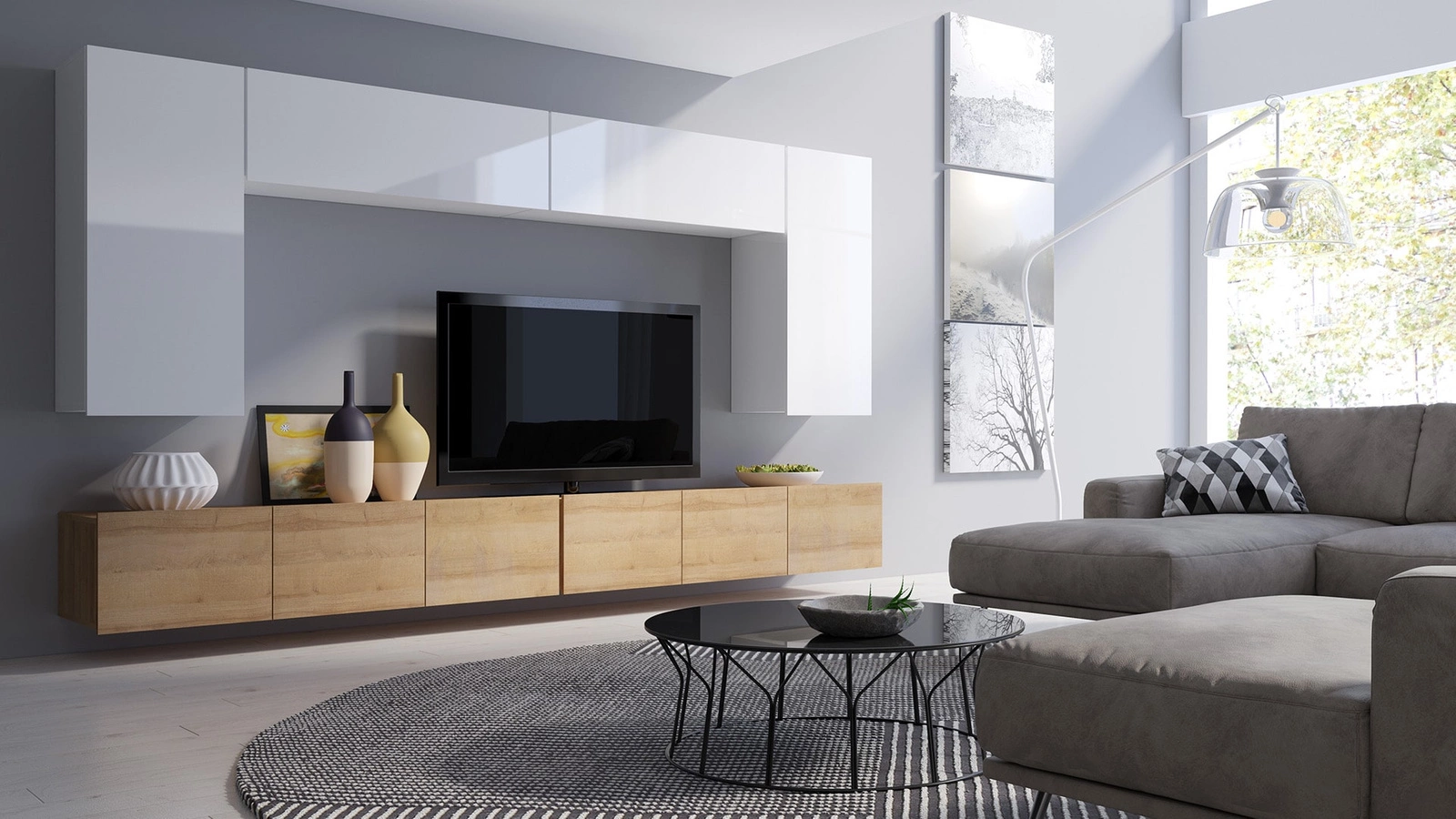 Prostorné skříně RTV pojme veškeré příslušenství a vybavení. Subteliny převislé fronty slouží také jako rukojeť. Další výhoda skříně RTV je možnost volby způsobu jejího umístění. Skříň RTV lze zavěsit na stěnu. Díky přiloženým plastovým nožičkám je skříň RTV velmi rychlá se může stát stojícím kusem nábytku.