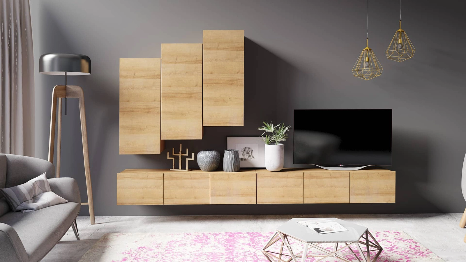 Nástěnná jednotka je vyrobena z vysoce kvalitní laminované desky, který je odolný vůči vnějším vlivům, jako jsou otlaky, nárazy a nešťastné škrábance. Záruky za nábytek Apulie bezproblémové používání a odolnost celé nástěnné jednotky pro dlouholeté používání. Teplé dubové zbarvení skvělé ladí s ostatními barvami, což z nábytku Apulia dělá skvělý zkontrolujte lze použít jako nástěnnou skříňku do obývacího pokoje nebo jako nástěnnou skříňku do obývacího pokoje.