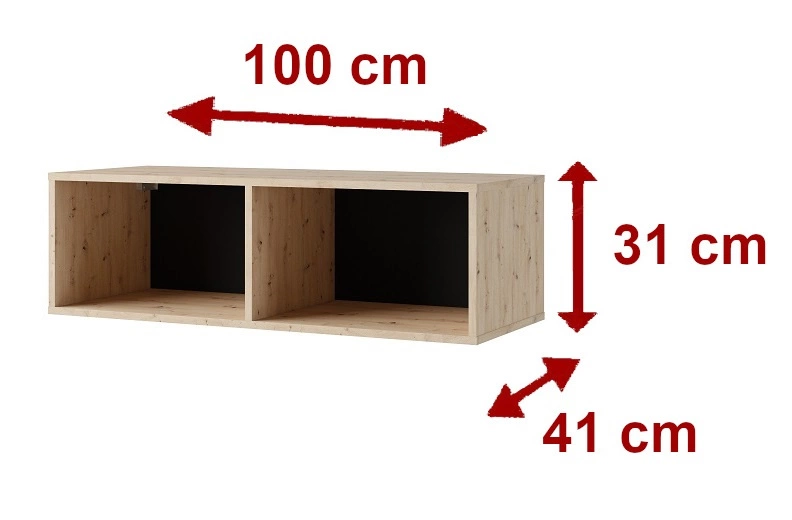 Prostorné skříně RTV pojme veškeré příslušenství a vybavení. Subteliny převislé fronty slouží také jako rukojeť. Další výhoda skříněk RTV je možnost zvolit si způsob umístění. Skříň RTV může stát na podlaze. Díky přiloženým závěsům se skříňka RTV může rychle stát nástěnnou jednotkou se může stát nástěnnou jednotkou.