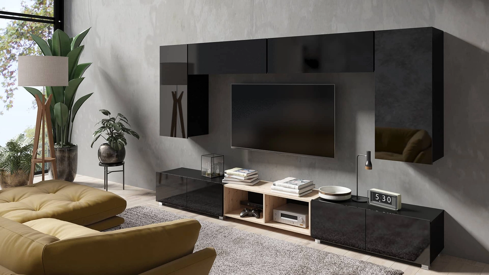 Nábytková nástěnná skříňka Apulia XXIII černý lesk / dub artisan extrémně stylová nábytková nástěnná skříňka jednoduché jednotky hodící se do každého interiéru