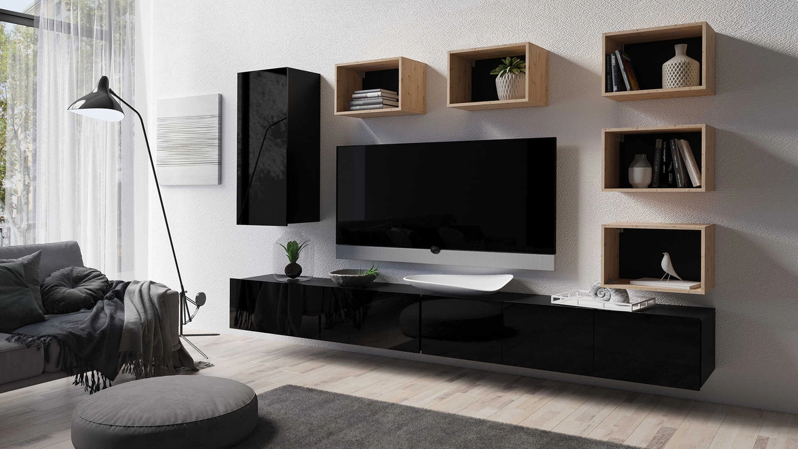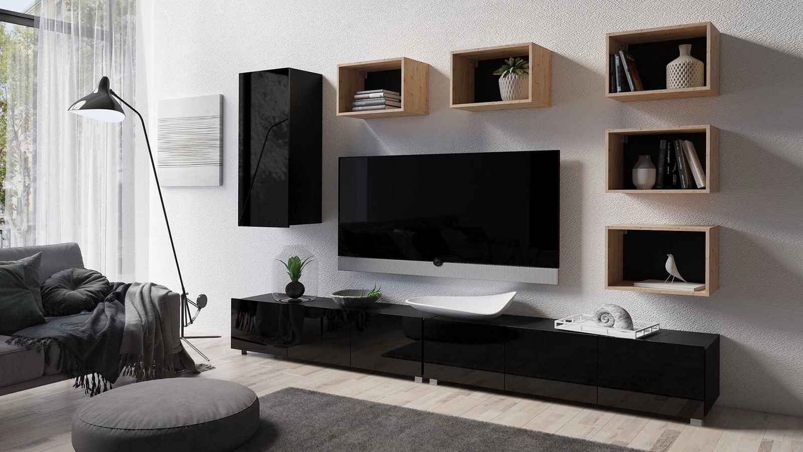 Apulia XXXVII černý lesk / dub artisan Výjimečně stylová nástěnná skříňka s jednoduchými nábytkovými díly, která se hodí do každého interiéru