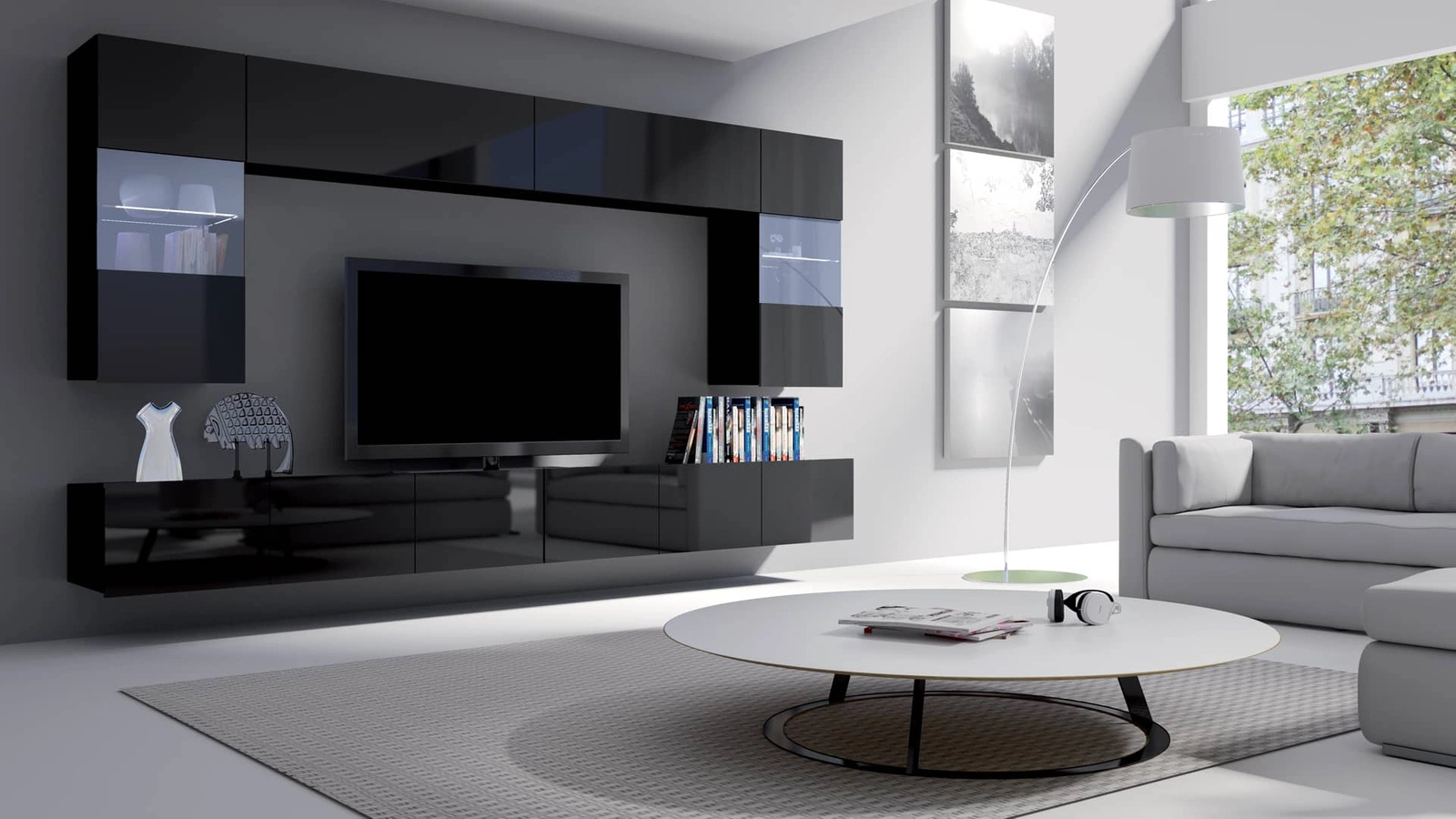 Závěsná vitrína Apulia 45 cm lesklá černá Minimalistický design Stylová vitrína do obývacího pokoje Jednoduchý design, který se hodí do každého interiéru