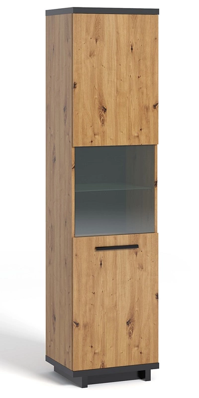 Vitrína Simi 50 cm v barvě dub artisan / černá je dokonalým doplňkem každého obývacího pokoje nebo zasedací místnosti.