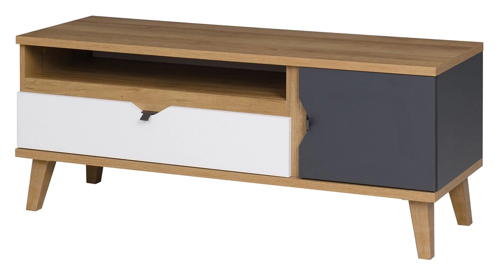 RTV skříňka Memone 120 cm dub zlatý / bílá / grafit Stylová TV skříňka ideální do pokoje pro mladé ve skandinávském stylu