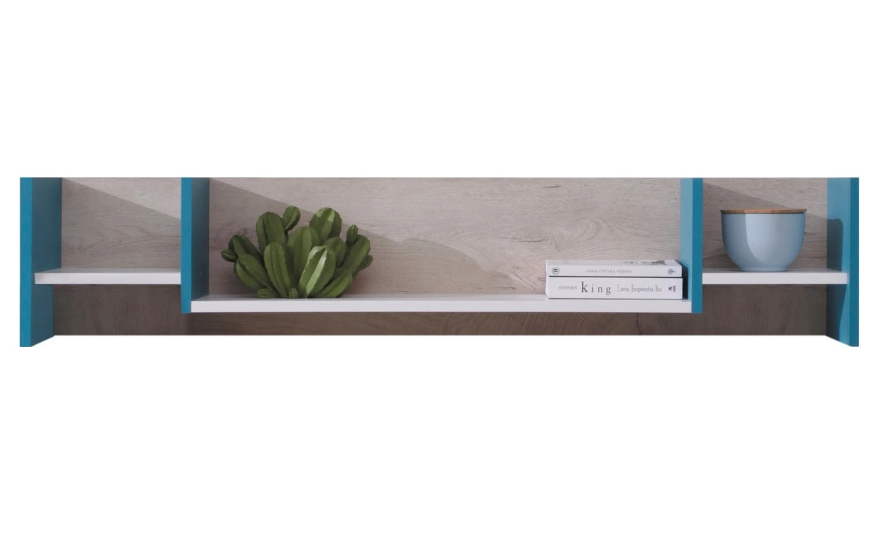 Polička je ideální volbou pro milovníky moderních aranžmá s jedinečným charakterem, pro které je k dispozici široká škála produktů funkčnosti nábytek. Police je vyrobena z vysoce kvalitní laminované desky, který je odolný vůči vnějším vlivům, jako jsou otlaky, nárazy a nešťastné škrábance. Polička je ideální pro použití v dětském nebo mládežnickém pokoji.