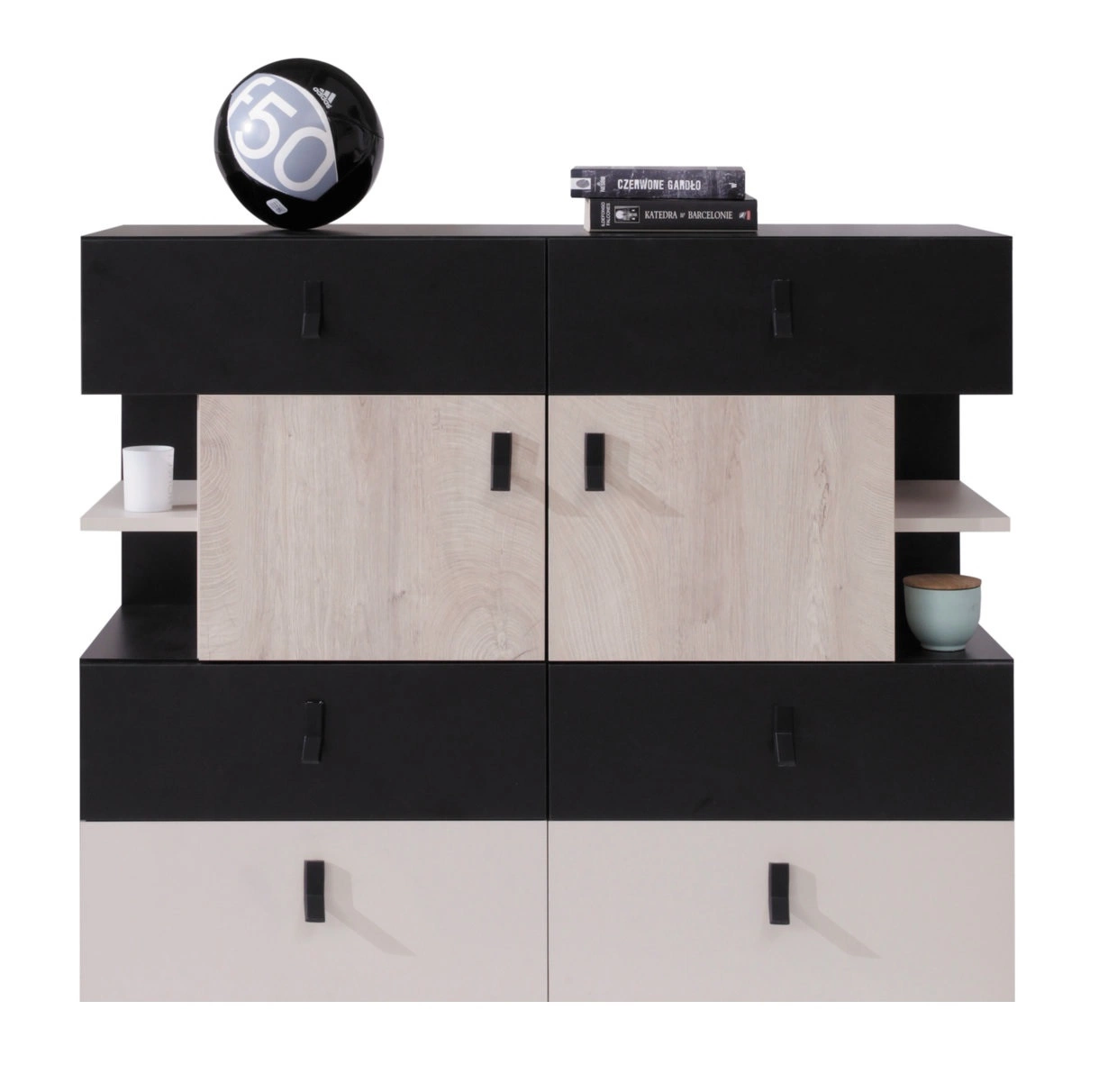 Komoda z szufladami Niko czarny / dąb / beż PL8