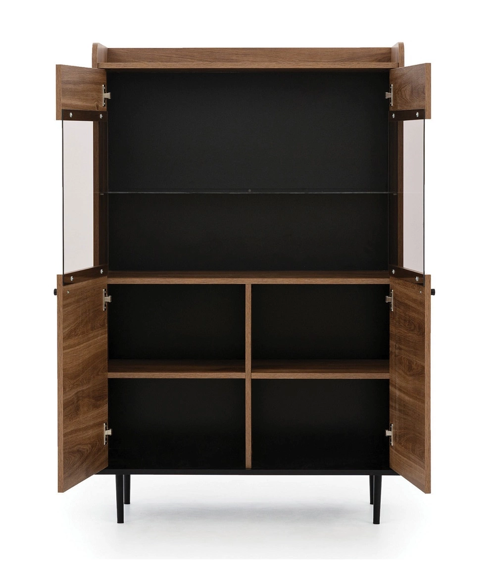 Webové stránky Apallo je nádherný kus nábytku se zvláštním a jedinečným charakterem. Zajímavé, tmavě hnědá barva čela dokonale ladí s černými doplňky a dodávají nábytku loftový a industriální charakter. Vysoké rozsahy zvýraznění nekonvenčnost vitríny a zabránit nešťastným pádům předmětů. Prosklená čela stránky umožní zvýraznění příslušenství pro výzdobu obývacího pokoje. Jedinečný design vitríny se osvědčí i v prostředí nejnáročnější interiér.