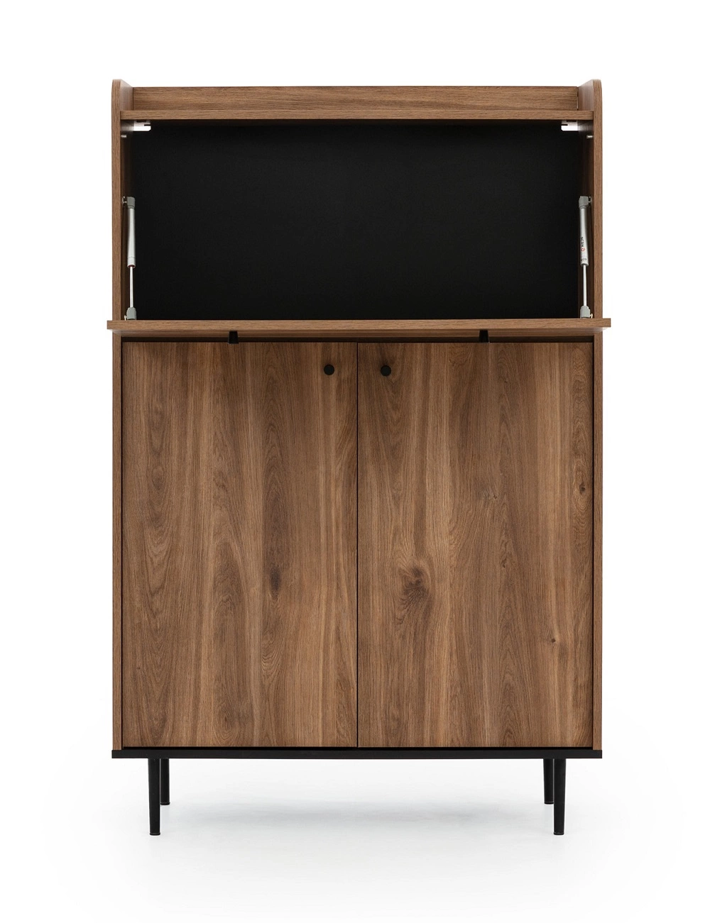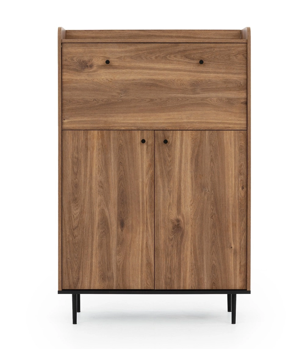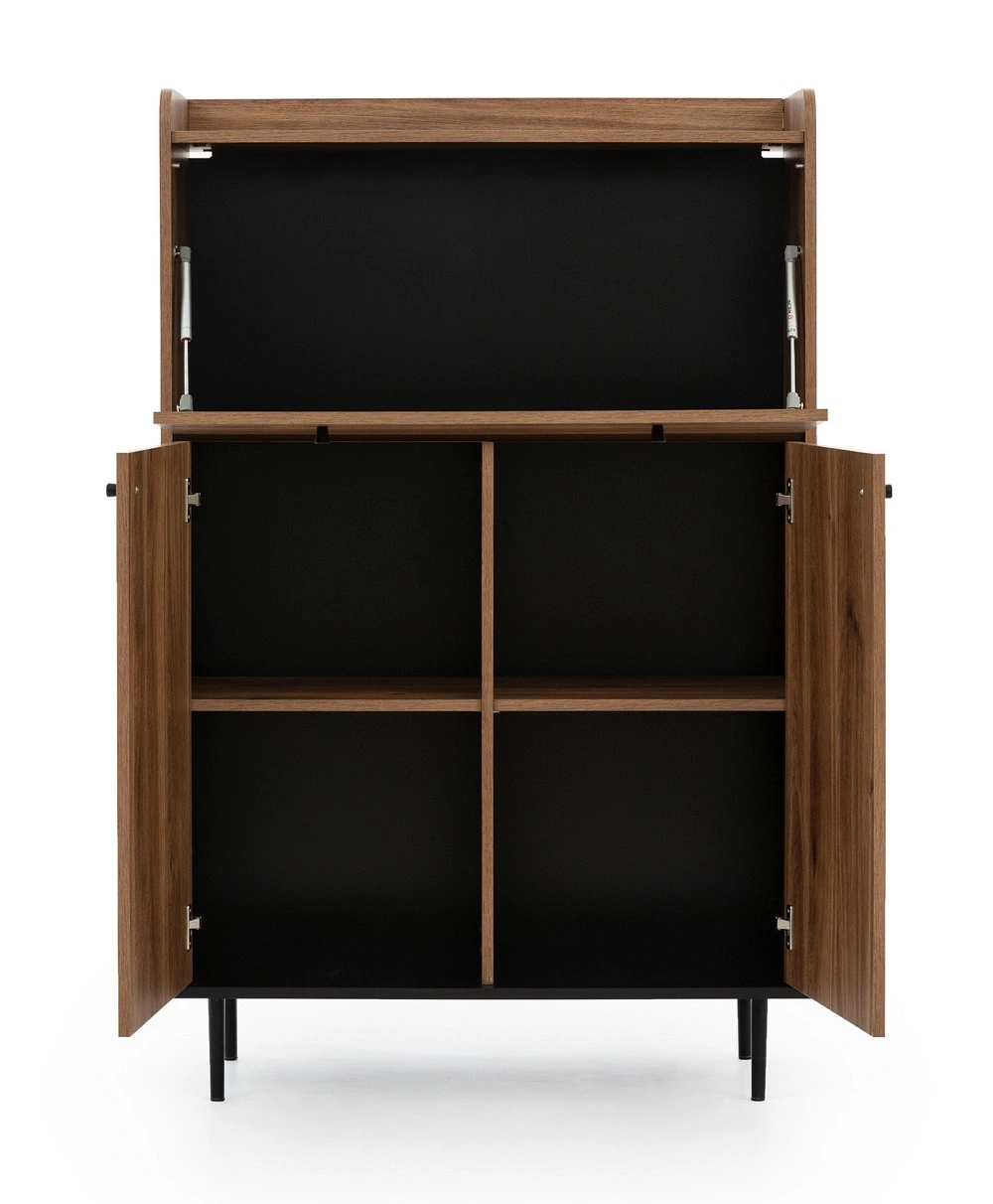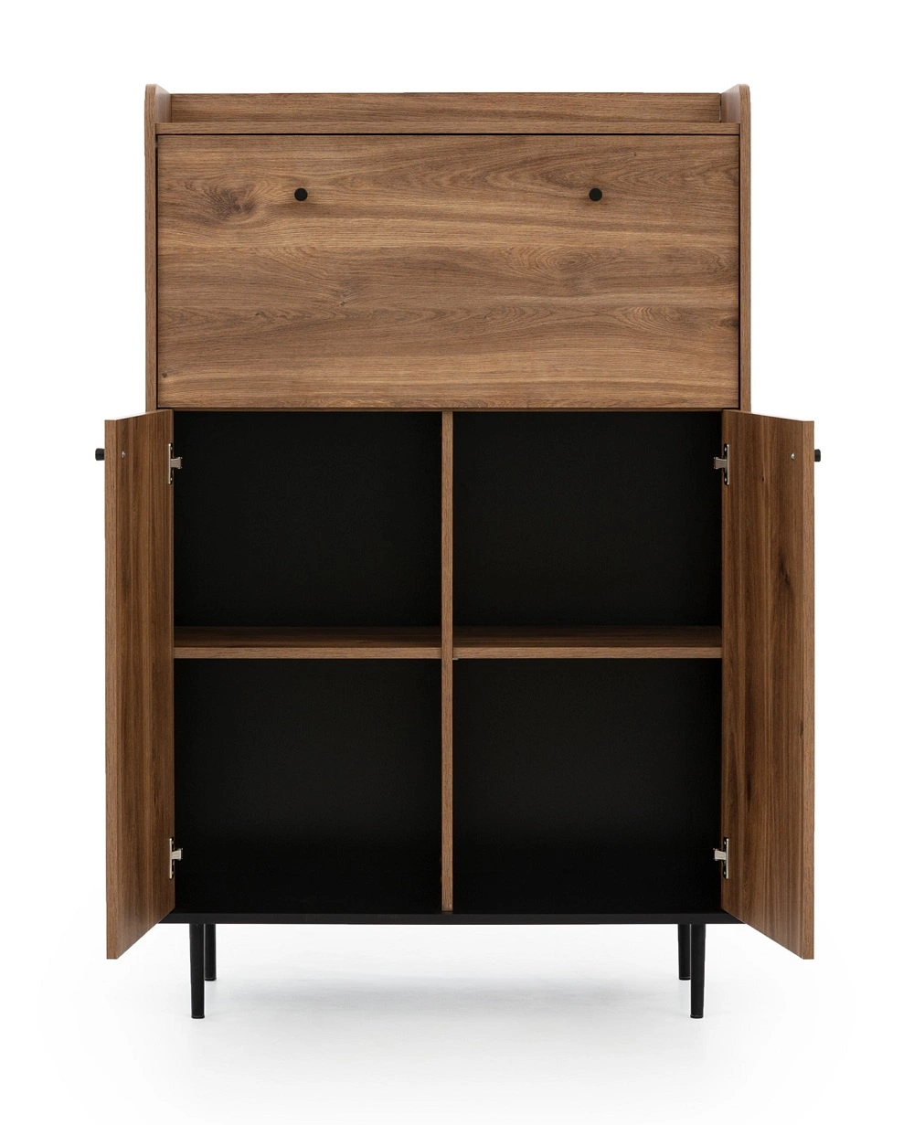 Nábytek Apallo je nádherný nábytek se zvláštním a jedinečným charakterem. Zajímavé, tmavě hnědá barva přední strany dokonale ladí s černé doplňky dodává nábytku loftový a industriální nádech. Vysoké desky zvýraznění nekonvenčnost nástěnné jednotky a zabránit nešťastným pádům dekorativních předmětů interiéry. Přítomnost nástěnné skříňky se stane stylovou tečkou na závěr místnosti a dodá jí moderní a elegantní vzhled. Jedinečný design nábytku Apallo bude fungovat i v nejnáročnější interiér.