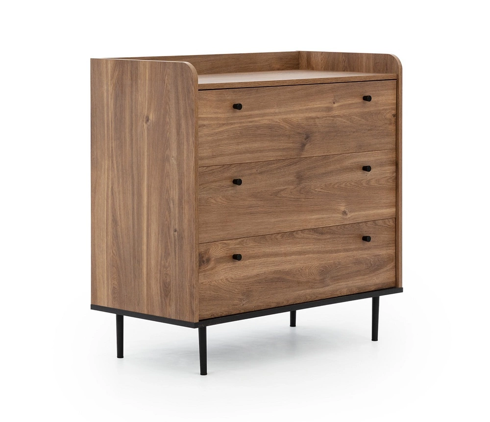 Nábytková sestava Apallo brandy dub castello výrazný design sestavy na kovových nohách subtilní úchyty vysoké okraje stolových desek
