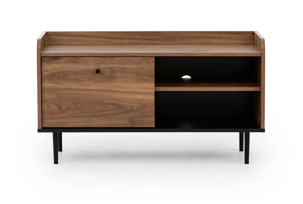 Nástěnná jednotka je vyrobena z vysoce kvalitní laminované desky tloušťka 16 mm, který je odolný vůči vnějším vlivům, jako jsou otlaky, nárazy a nešťastné škrábance. Stylovou tečkou na čele nástěnné skříňky je malý úchytky v černé barvě. Každá z pevných látek byla podepřena kovová základna. Prostorná komoda pojme veškeré příslušenství a vybavení. Otevřené skříňové police RTV jsou skvělým místem pro vaše audiovizuální zařízení. Deska konferenčního stolku je odolný proti rozlití.