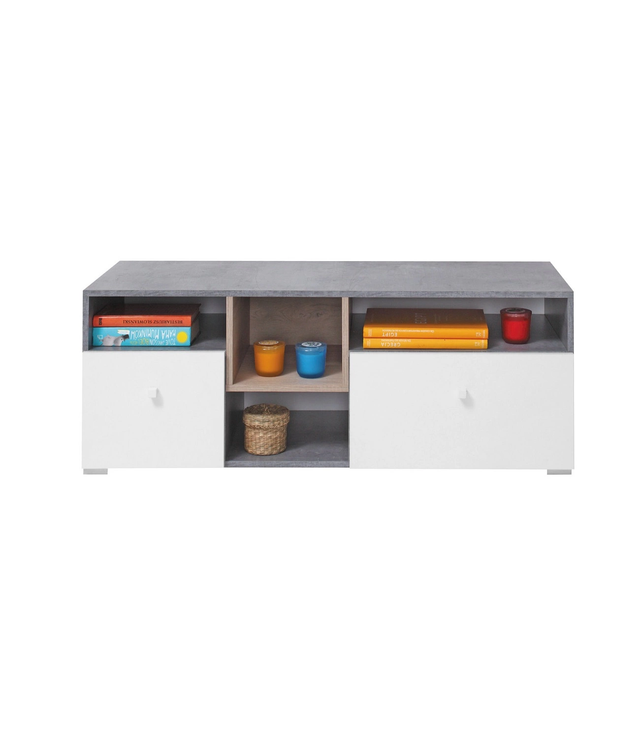 Epsilon 120 cm RTV skříňka beton / bílá / dub Skříňka s TV zásuvkami ideální do pokoje pro mládež