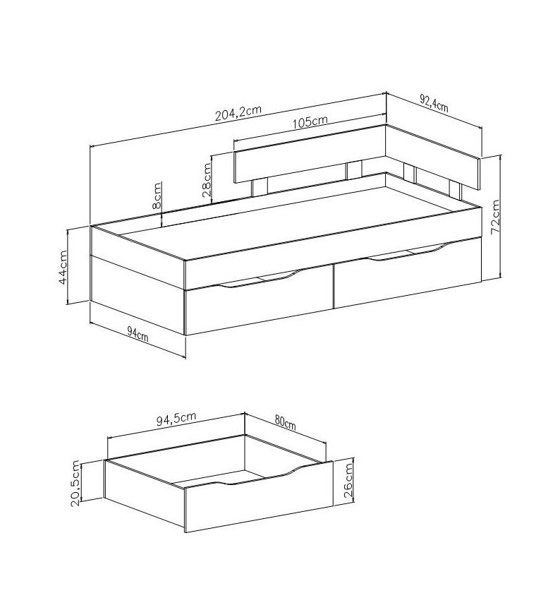 - Łóżko z szufladami Epsilon 90x200 cm to przepis na stylowy oraz funkcjonalny mebel do pokoju nastolatka! Wykonanie z wysokiej jakości płyty laminowanej gwarantuje bezproblemowe korzystanie oraz trwałość całego mebla przez wiele lat użytkowania.