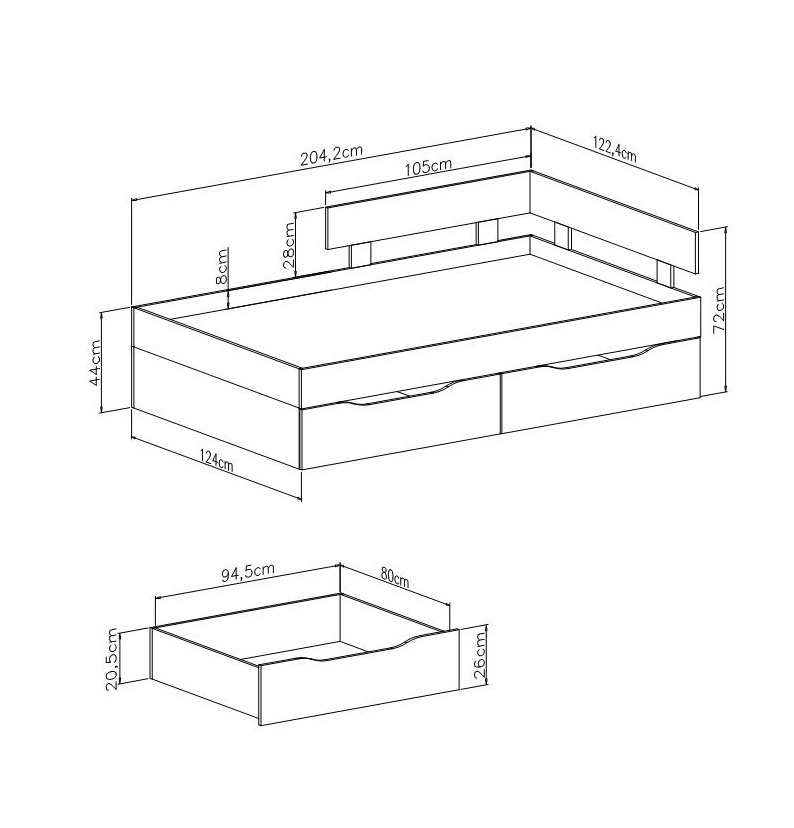 - Łóżko z szufladami Epsilon 120x200 cm to przepis na stylowy oraz funkcjonalny mebel do pokoju nastolatka! Wykonanie z wysokiej jakości płyty laminowanej gwarantuje bezproblemowe korzystanie oraz trwałość całego mebla przez wiele lat użytkowania.