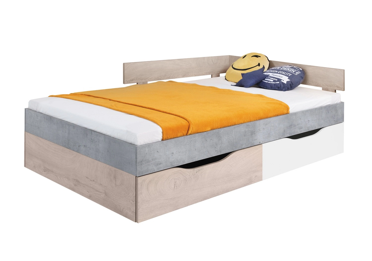 Postel Epsilon 120x200 cm se zásuvkami v barvě beton / bílá / dub je receptem na moderní a funkční interiér v pokoji teenagera.