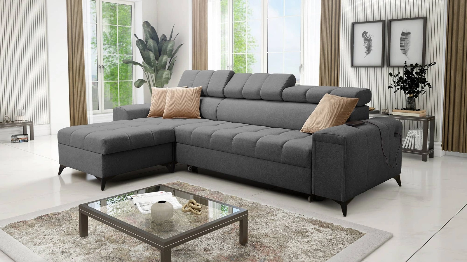 Podrobnosti o moderní rohové pohovce s funkcí spaní Bolmso