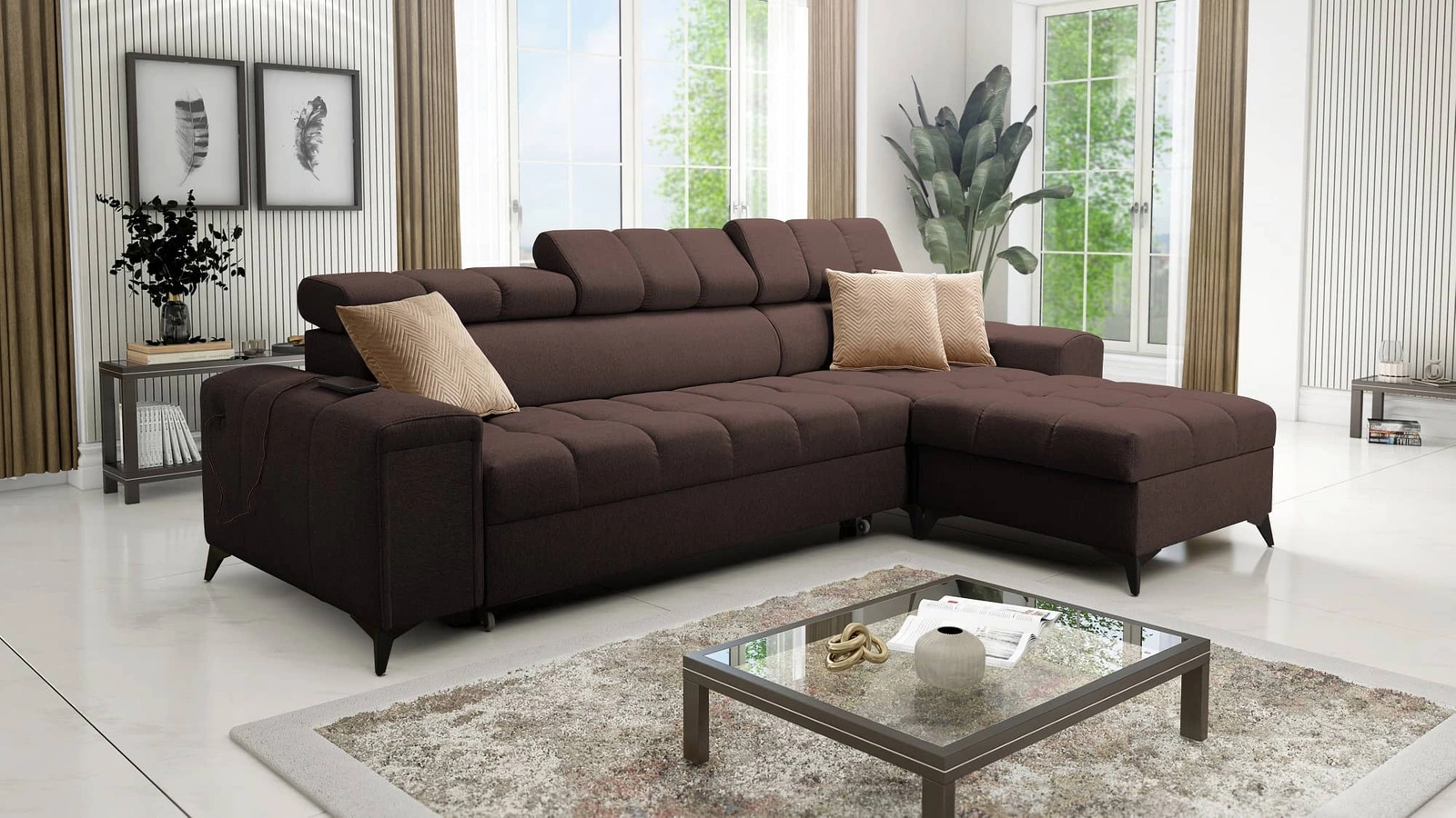 Rohová pohovka Bolmso v hnědé barvě s nastavitelnými opěrkami hlavy je nádherný kus nábytku se zárukou nejvyššího pohodlí a funkčnosti.