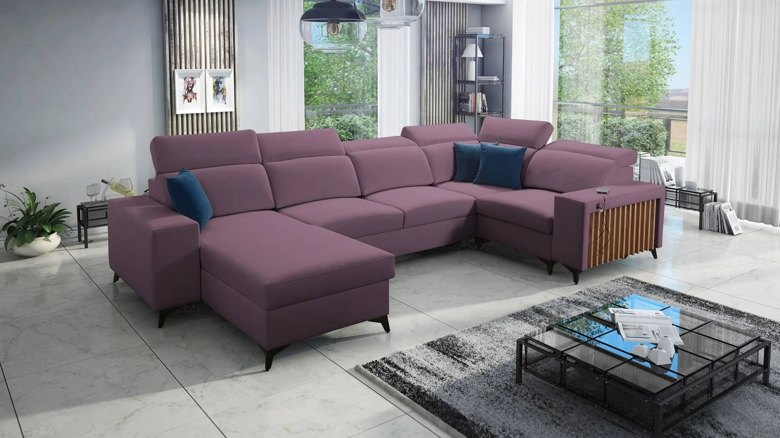 Rohová pohovka Kelly IV ve vřesové barvě s nastavitelnými opěrkami hlavy je zajímavě vypadající kus nábytku se zárukou nejvyššího pohodlí a funkčnosti.