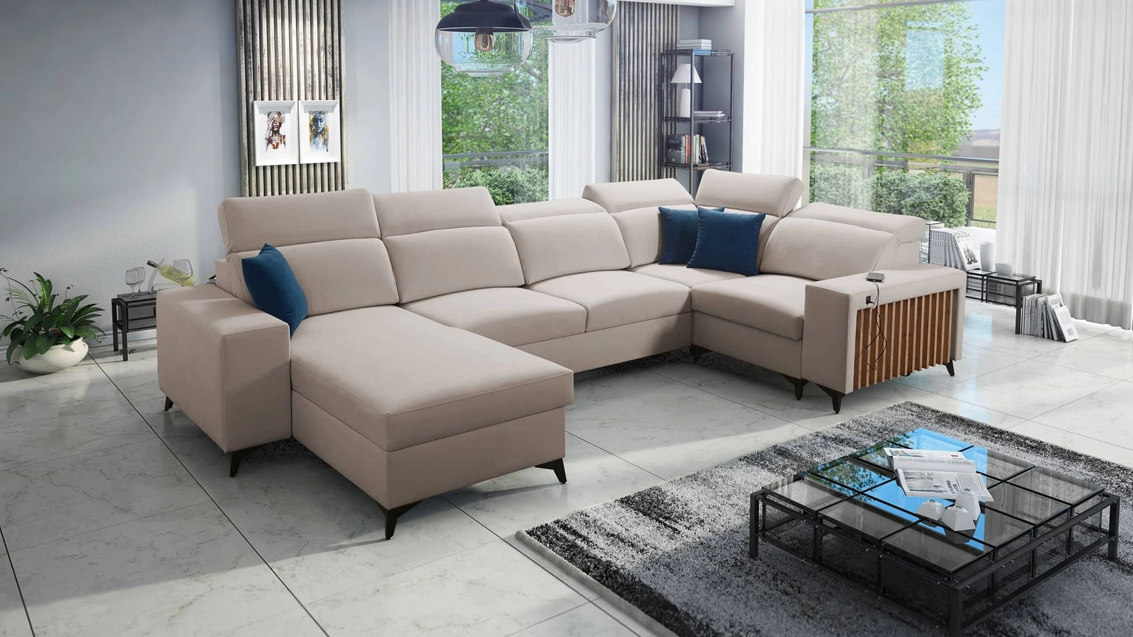 Rohová pohovka Kelly IV ve světle béžové barvě s nastavitelnými opěrkami hlavy je zajímavě vypadající kus nábytku se zárukou nejvyššího pohodlí a funkčnosti.