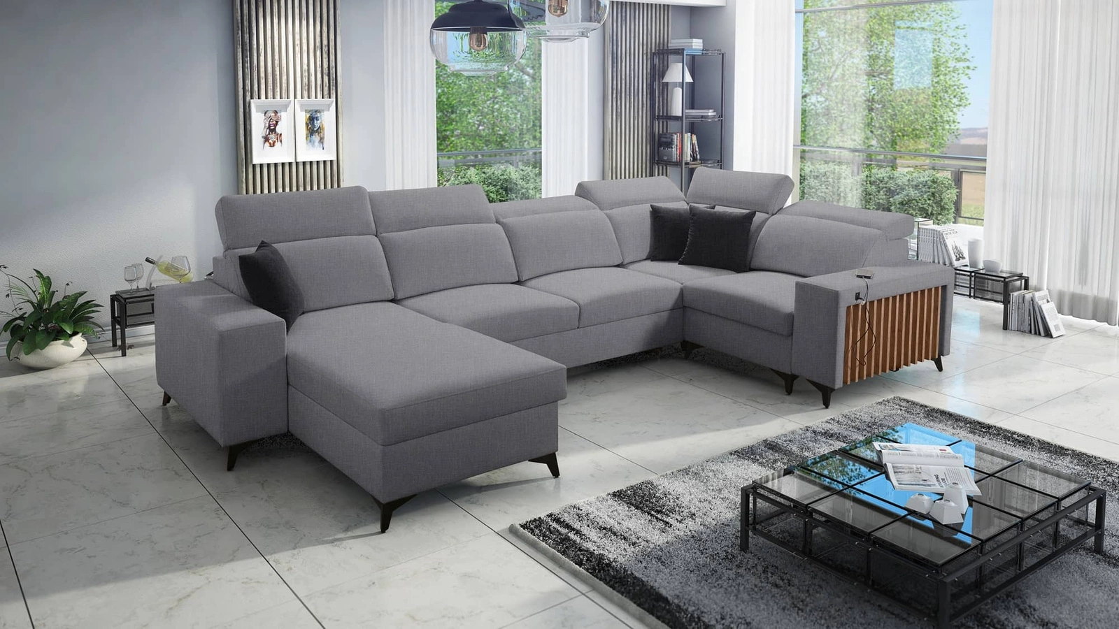 Mezi doplňky tohoto nábytku, které ocení všichni uživatelé, patří dva kontejnery na lůžkoviny, funkce spaní, nabíjecí zásuvka USB v boční části rohu pro nabíjení telefonu a dalších multimediálních zařízení.