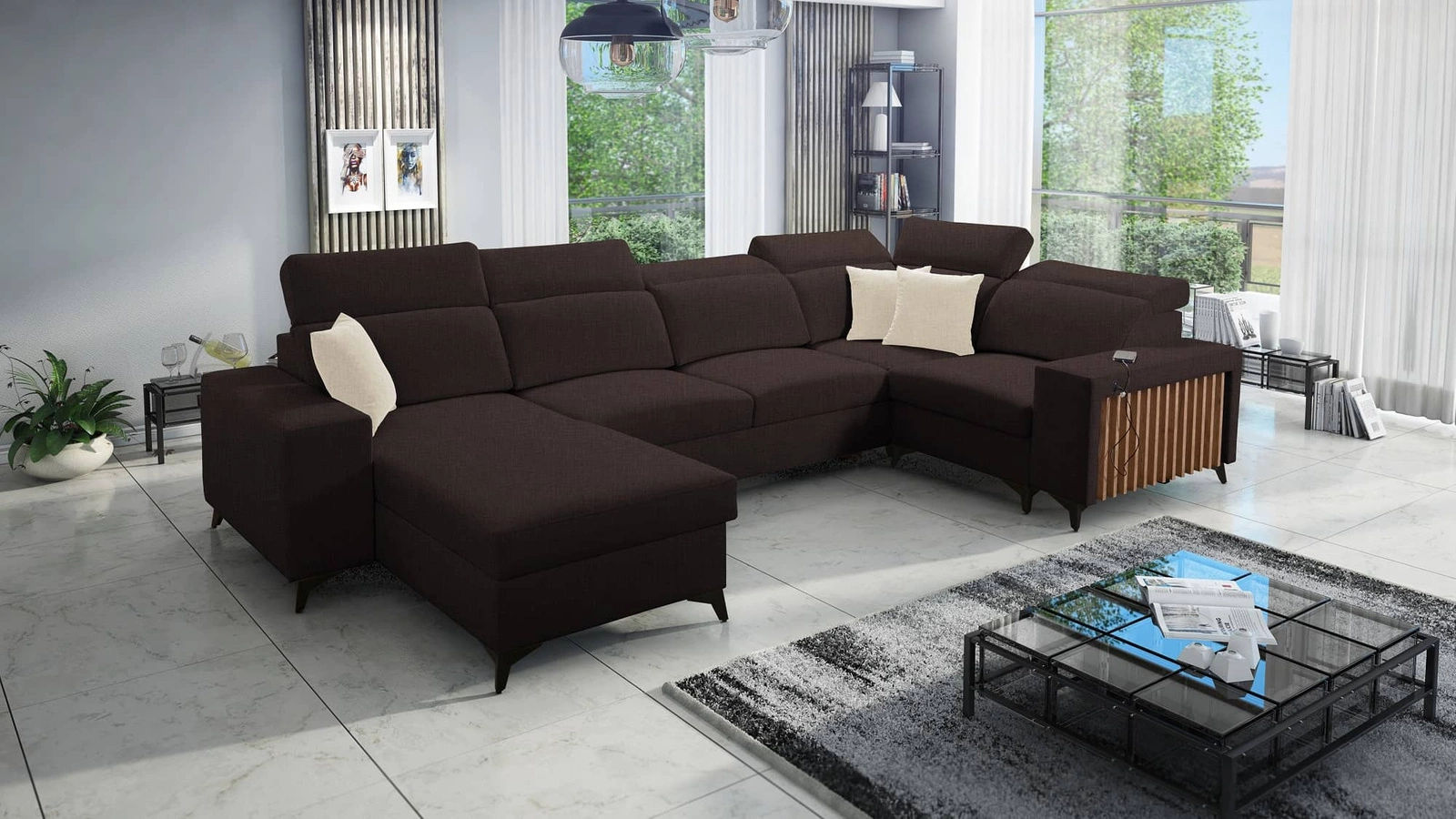 Rohová pohovka Kelly IV v hnědé barvě s nastavitelnými opěrkami hlavy je zajímavě vypadající kus nábytku se zárukou nejvyššího pohodlí a funkčnosti.