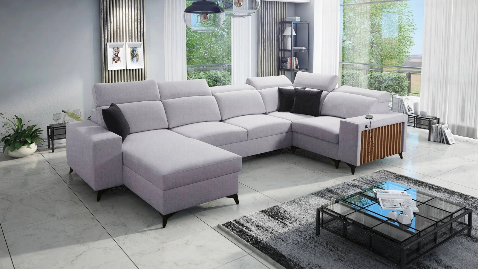 Mezi doplňky tohoto nábytku, které ocení všichni uživatelé, patří dva kontejnery na lůžkoviny, funkce spaní, nabíjecí zásuvka USB v boční části rohu pro nabíjení telefonu a dalších multimediálních zařízení.