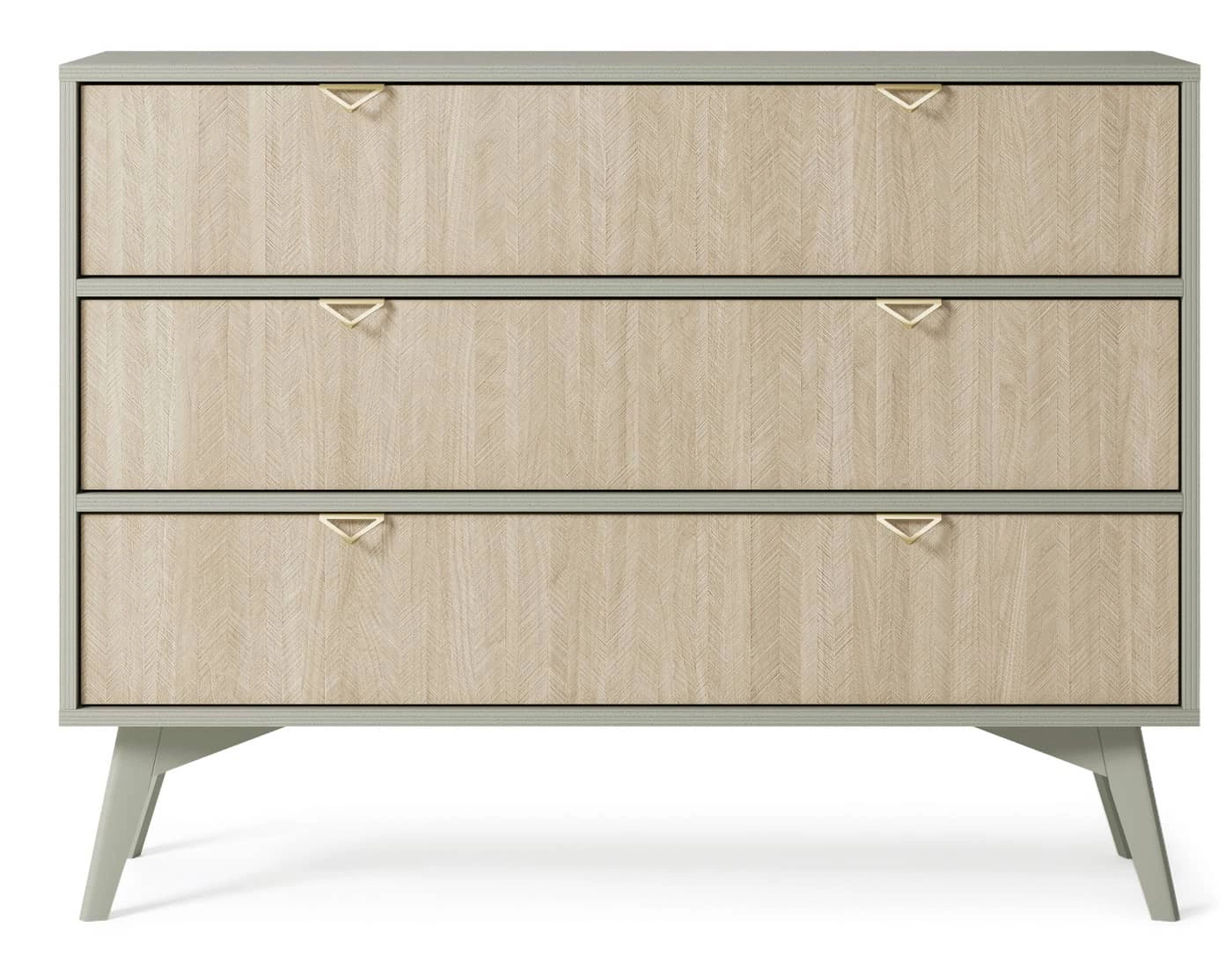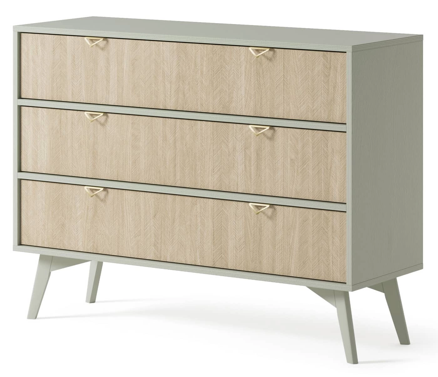 Komoda Wald 106 cm eukalyptus / béžová herringbone vkusný dekor herringbone na čelech prostorná komoda ve skandinávském stylu