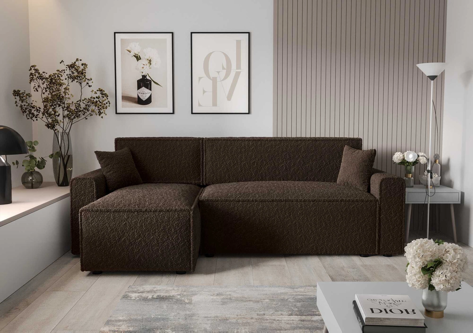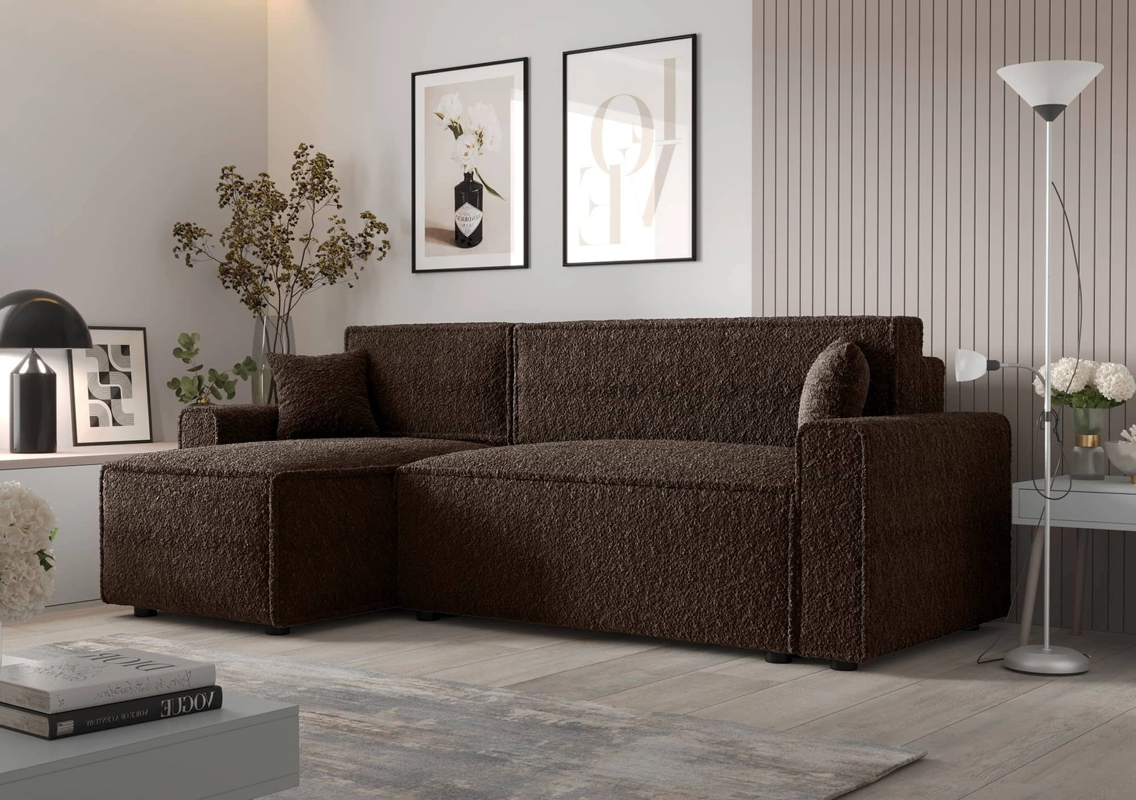 Rohová sedací souprava s funkcí spaní Brandon Bis hnědá levá strana měkká tkanina s charakteristickou smyčkovou povrchovou nádobou na lůžkoviny
